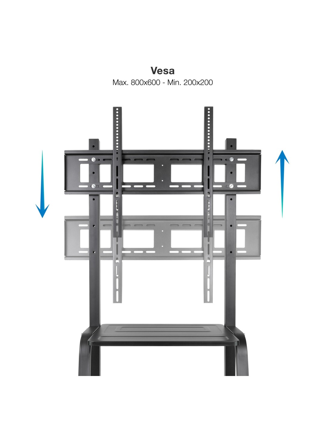 TooQ Coloso Soporte de Suelo con Ruedas para Pantalla 37"-100". Capacidad máxima de peso: 150 kg, Tamaño mínimo de pantalla: 94 cm (37"), Tamaño máximo de pantalla: 2,54 m (100"), Compatibilidad con interfaz de montaje (min): 200 x 200 mm, Compatibilidad con interfaz de montaje (max): 800 x 600 mm. Rango de ajustes de altura: 1085 - 1475 mm. Color del producto: Negro