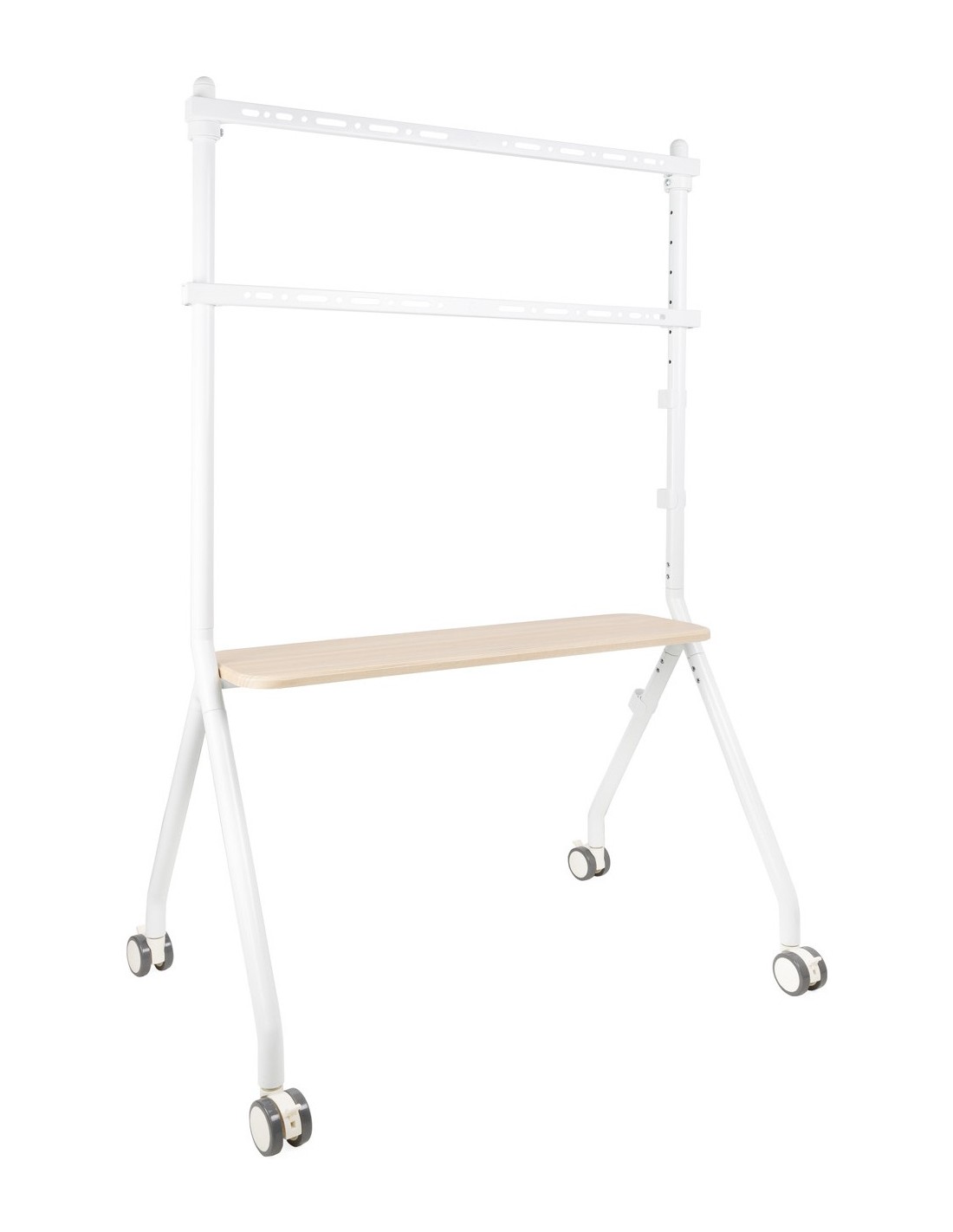 TooQ iLOVE Soporte de Suelo con Ruedas para Pantalla 49"-80", Blanco y Haya, 50 kg, 124,5 cm (49"), 2,03 m (80"), 775 - 1075 mm