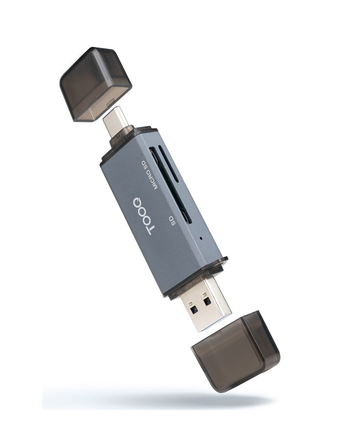 TooQ Lector de Tarjetas SD + TF, con entradas USB-C 3.0 + USB A, Color Gris, MicroSD (TransFlash), SD, Gris, Aluminio, USB 3.0 Type-A/Type-C, 80 mm, 21 mm