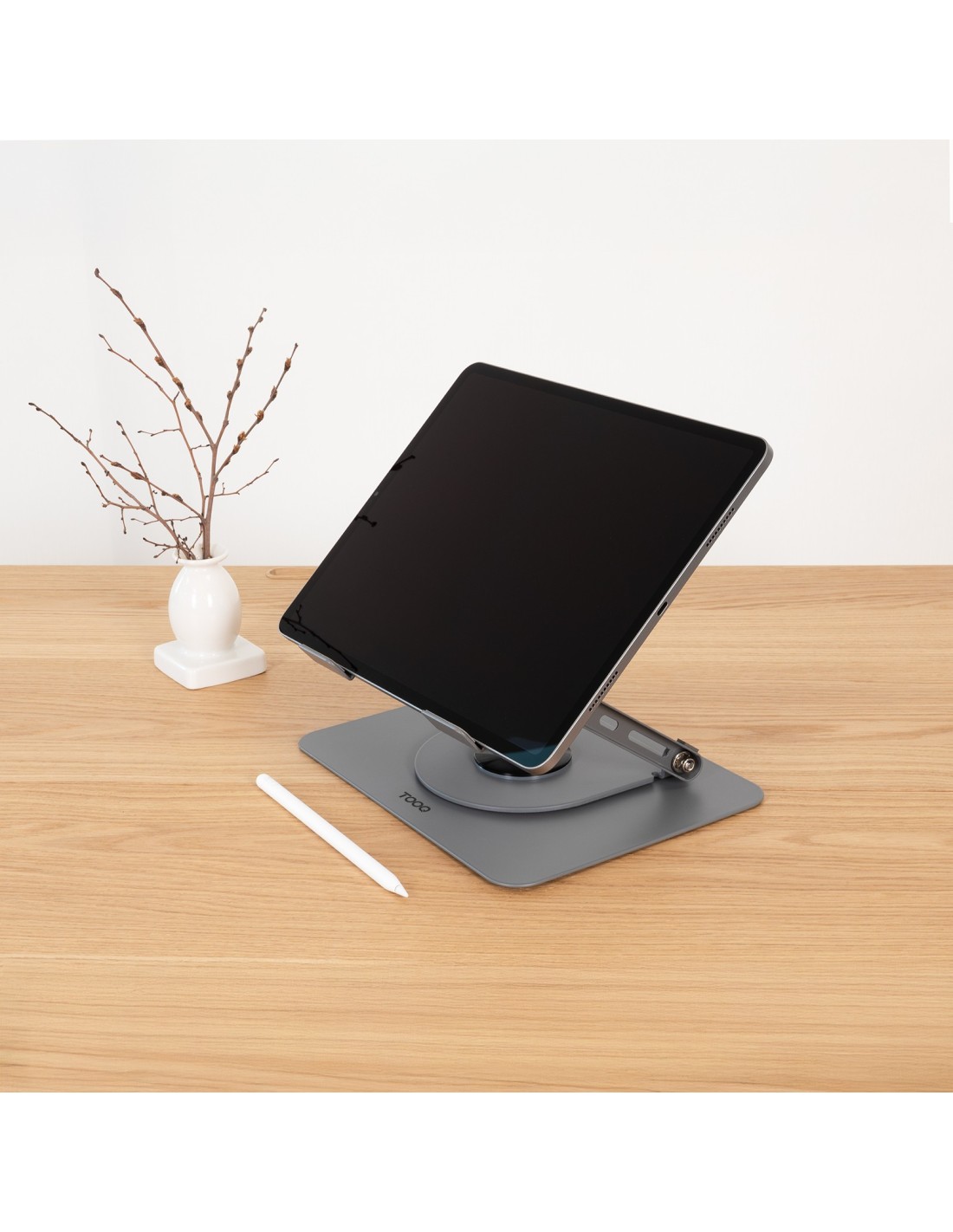 TooQ Soporte Elevador con rotación 360° y ajustable, para dispositivos de 11”-17”, Color Gris Oscuro