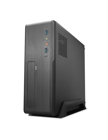 - Elegante caja slim compatible con placas base Micro ATX y Mini ITX - Sistema de pasacables incorporado para organizar los cables y mejorar el flujo de aire. - Tipo de caja: slim Micro ATX y Mini ITX - Conectores frontales: 2 x USB 3.0, audio, y lector de tarjetas (SD, Micro SD) - Bahías: 1 de 5 ¼ externa, 1 de 3 ½ interna y 1 de 2 ½ interna - Material: Acero SGCC de 0.5mm - Fuente de alimentación: Micro ATX de 500W (220V AC) silenciosa con conectores 20+4 pines, 1 x - 4+4 pines, 2 x SATA, 1 x IDE+1 x SATA - Dimensiones: 380 x 103 x 305 mm