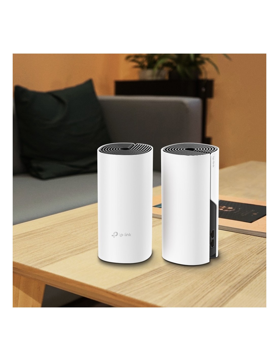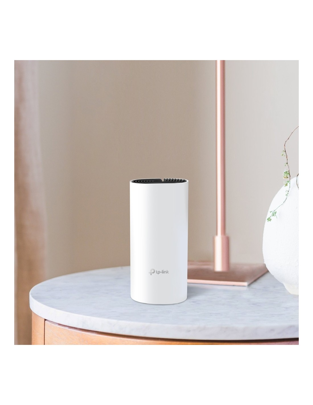 TP-Link Deco M4(2-pack). Color del producto: Blanco, Tipo de antena: Interno, Tipo de producto: Sistema de malla. Banda Wi-Fi: Doble banda (2,4 GHz / 5 GHz), Estándar Wi-Fi: Wi-Fi 5 (802.11ac), Tasa de transferencia de datos WLAN (máx.): 1167 Mbit/s. Seguridad con cortafuegos: SPI, Sistemas operativos móviles soportados: Android 4.4, Android 5.0, Android 5.1, Android 6.0, Android 7.0, Android 7.1, Android 7.1.2,.... Voltaje de entrada AC: 100 - 240 V, Frecuencia de entrada AC: 50 - 60 Hz, Voltaje de salida de adaptador AC: 12 V. Certificados de conformidad: RoHS, CE, Certificación: FCC, IC, NCC, BSMI, IDA, RCM, JPA, JRF, VCCI, KC
