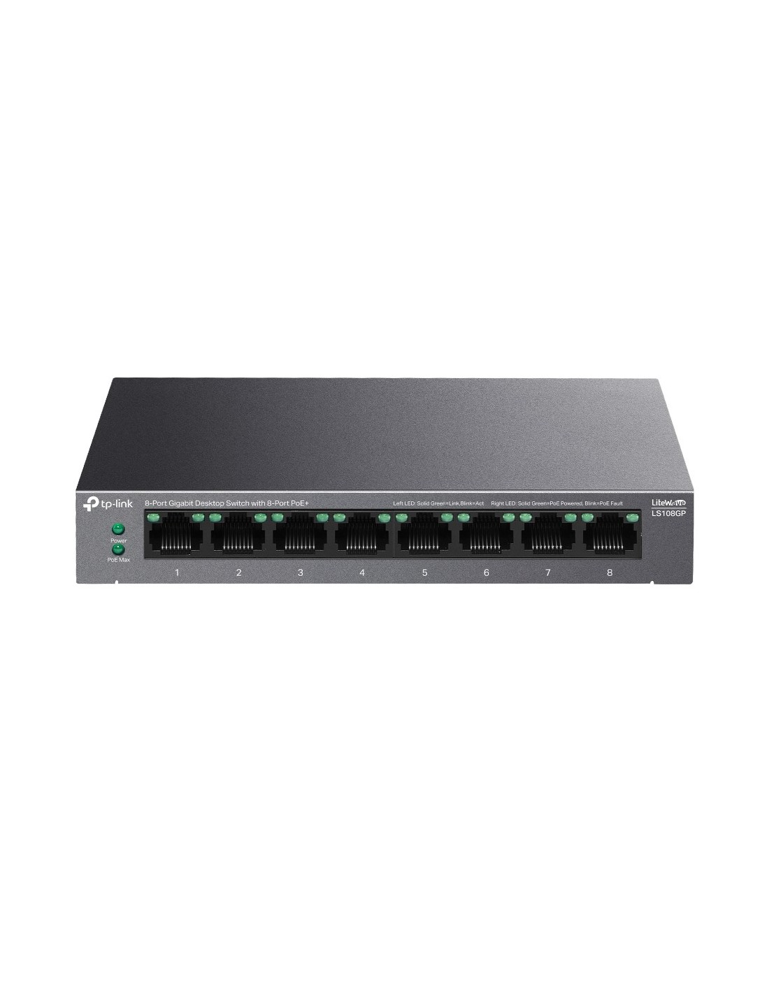 TP-Link LiteWave LS108GP. Tipo de interruptor: No administrado. Puertos tipo básico de conmutación RJ-45 Ethernet: Gigabit Ethernet (10/100/1000), Cantidad de puertos básicos de conmutación RJ-45 Ethernet: 8. Tabla de direcciones MAC: 4000 entradas, Capacidad de conmutación: 16 Gbit/s. Estándares de red: IEEE 802.1p, IEEE 802.3ab, IEEE 802.3af, IEEE 802.3at, IEEE 802.3i, IEEE 802.3u, IEEE 802.3x, IEEE.... Voltaje de entrada DC: 53.5 V. Conector eléctrico: Toma de entrada de CC. Energía sobre Ethernet (PoE)