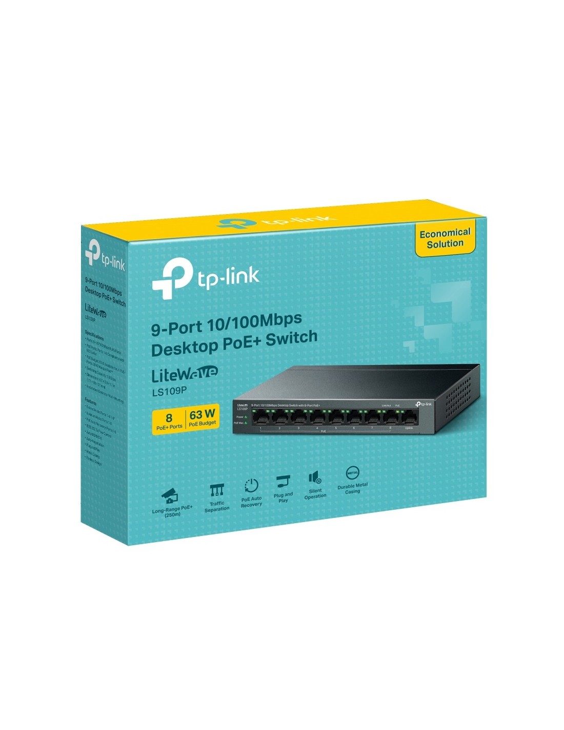 TP-Link LiteWave LS109P switch No administrado Fast Ethernet (10/100) Energía sobre Ethernet (PoE) Negro