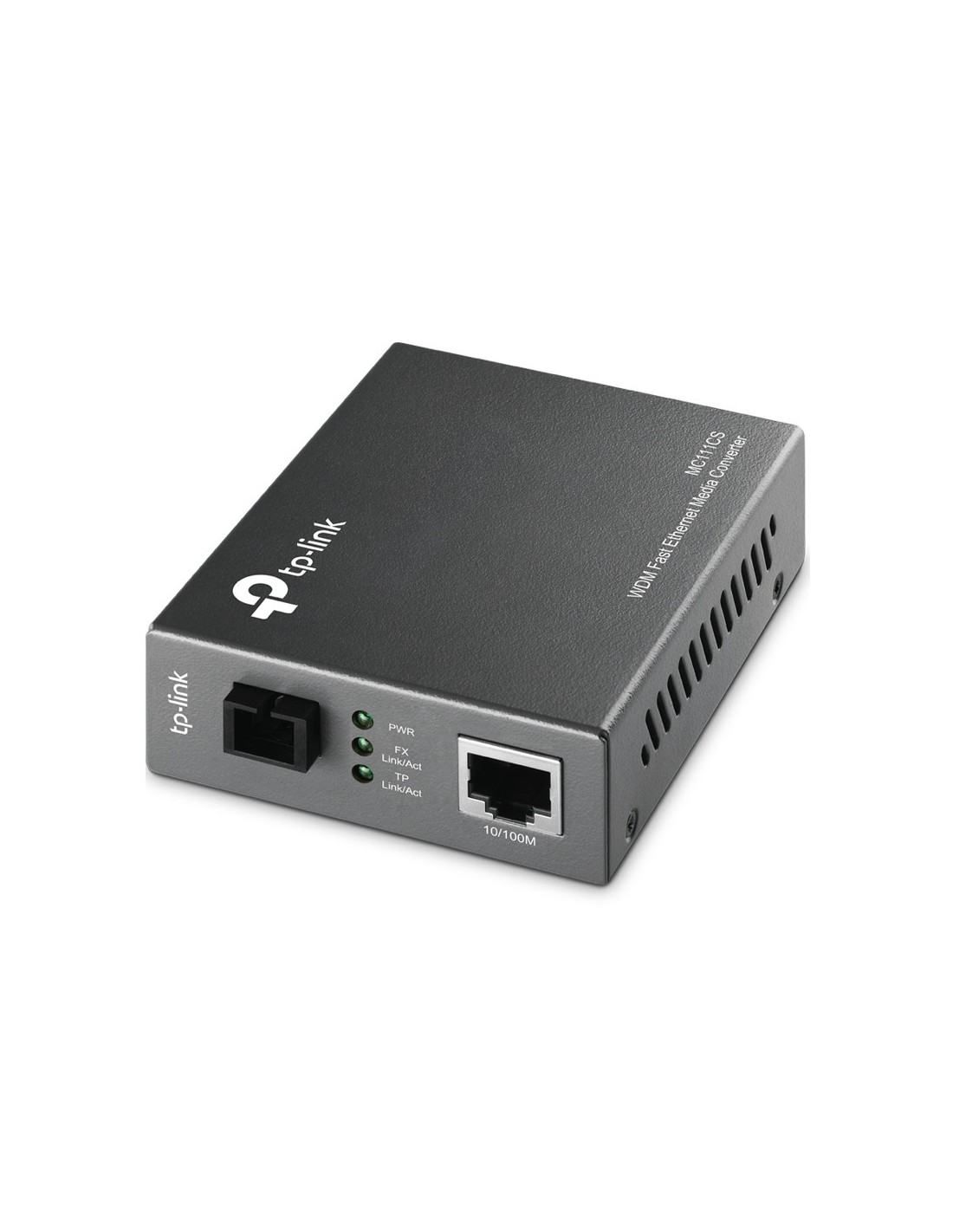 TP-Link MC111CS. Rango máximo de transferencia de datos: 1000 Mbit/s, Estándares de red: IEEE 802.3, IEEE 802.3u, IEEE 802.3x, Tipo de interfaz ethernet: Gigabit Ethernet. Distancia de transferencia máxima: 20000 m, Longitud de onda: 1550 nm, Estructura de modo de fibra: Monomodo. Indicadores LED: Actividad, Poder, Color del producto: Negro. Conector fibra óptica: SC, Tecnología de conectividad: Alámbrico. Consumo de energía (max): 1,23 W