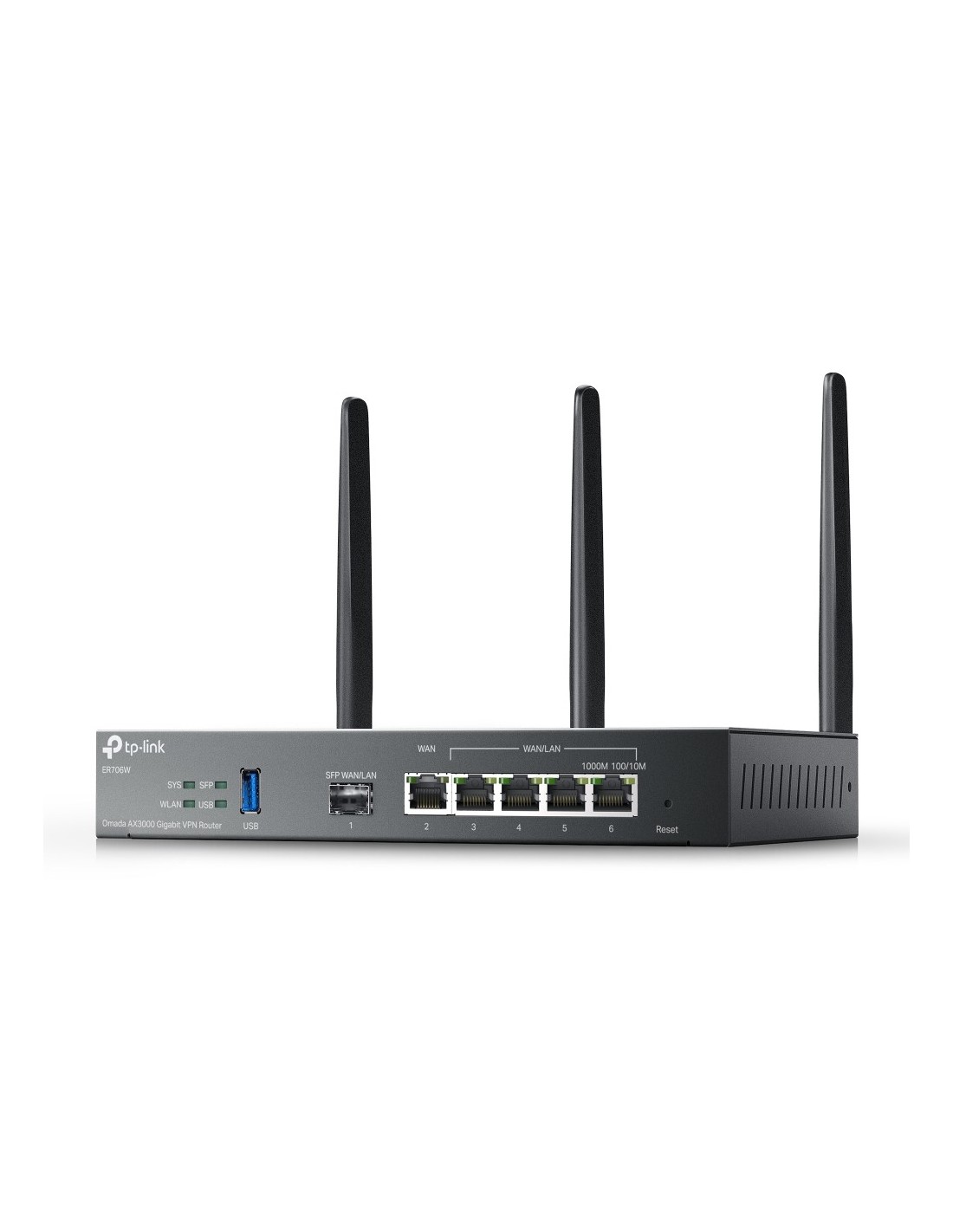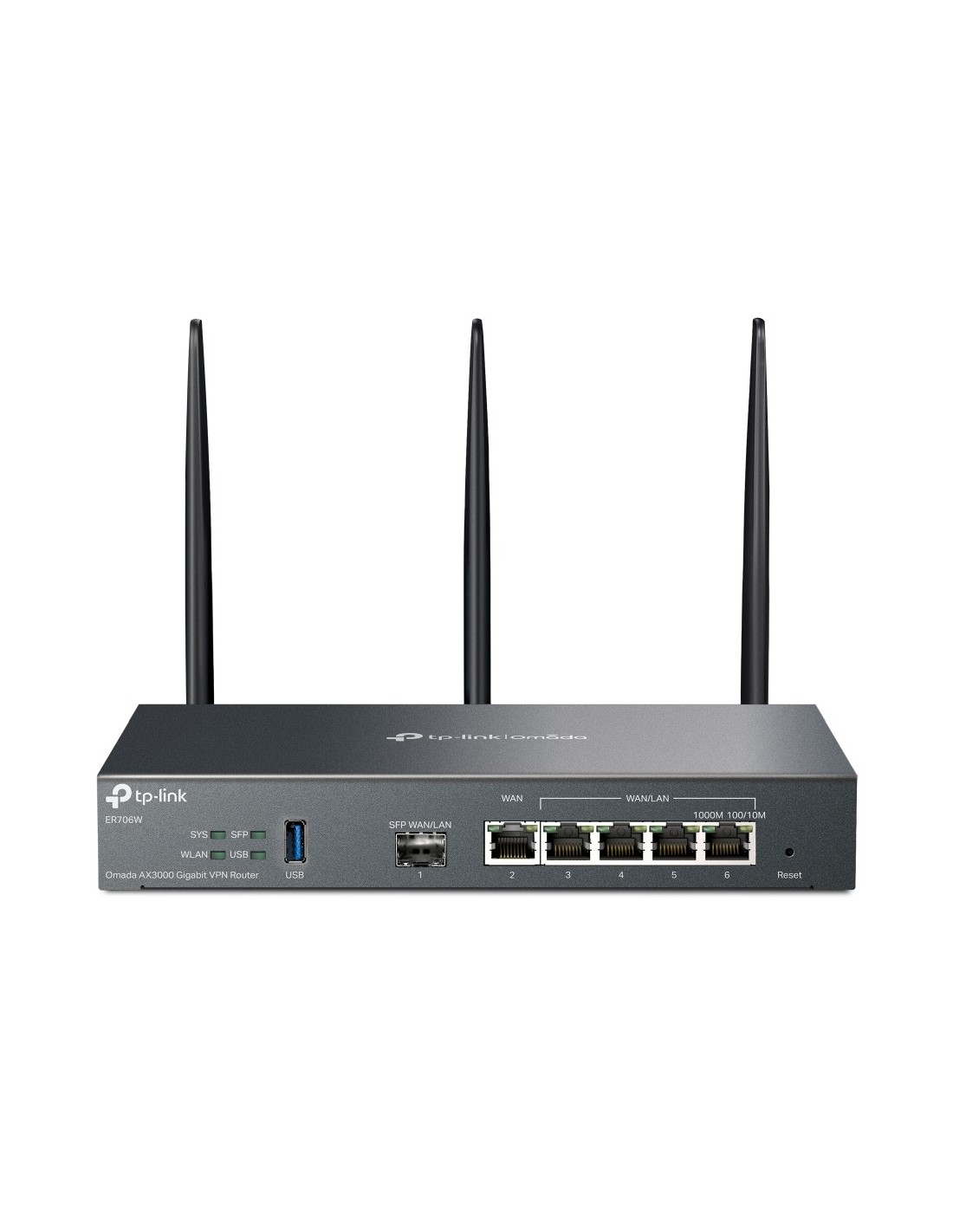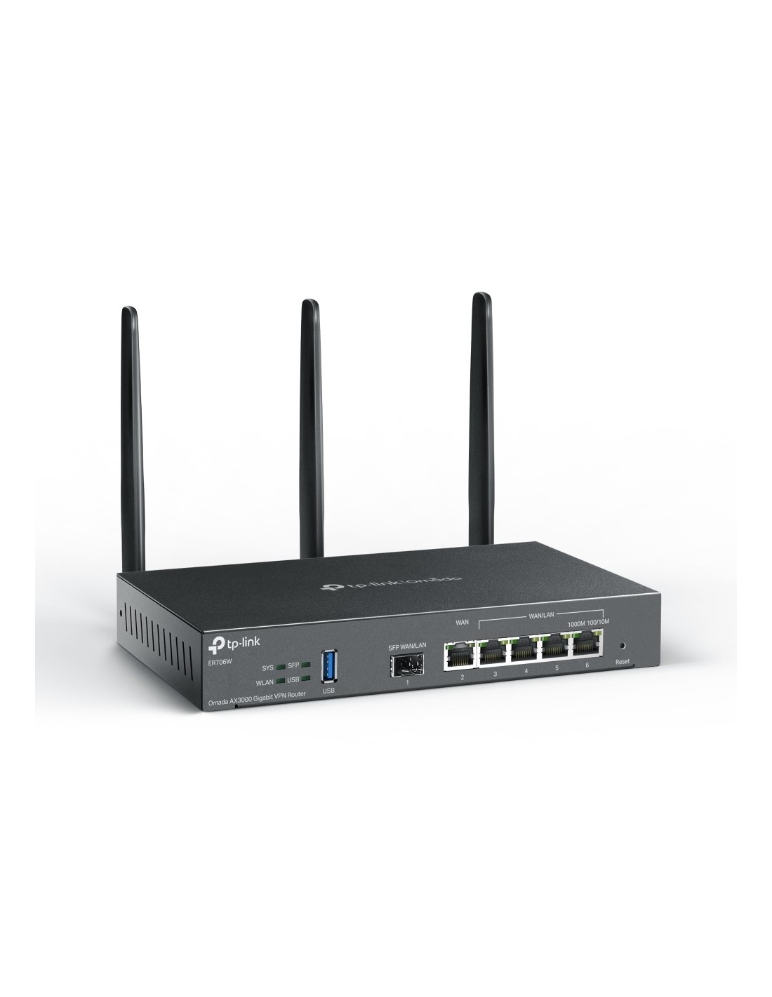 TP-Link Omada ER706W. Tipo de conexión WAN: SFP. Banda Wi-Fi: Doble banda (2,4 GHz / 5 GHz), Tasa de transferencia de datos WLAN (máx.): 3000 Mbit/s, Tasa de transferencia de datos WLAN (primera banda): 574 Mbit/s. Tipo de interfaz Ethernet LAN: Gigabit Ethernet, Ethernet LAN, velocidad de transferencia de datos: 10,100,1000 Mbit/s, Tecnología de cableado: 10/100/1000Base-T(X). Algoritmos de seguridad soportados: WPA, WPA2, WPA3-Enterprise. Protocolo de routing: OSPF, RIP