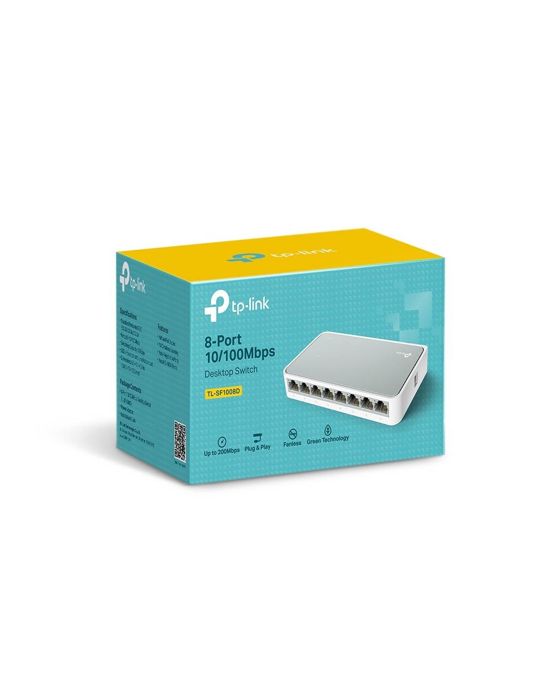 TP-Link TL-SF1008D. Tipo de interruptor: No administrado. Puertos tipo básico de conmutación RJ-45 Ethernet: Fast Ethernet (10/100), Cantidad de puertos básicos de conmutación RJ-45 Ethernet: 8. Bidireccional completo (Full duplex). Tabla de direcciones MAC: 1000 entradas, Capacidad de conmutación: 1,6 Gbit/s. Estándares de red: IEEE 802.3u, IEEE 802.3x. Conector eléctrico: Toma de entrada de CC