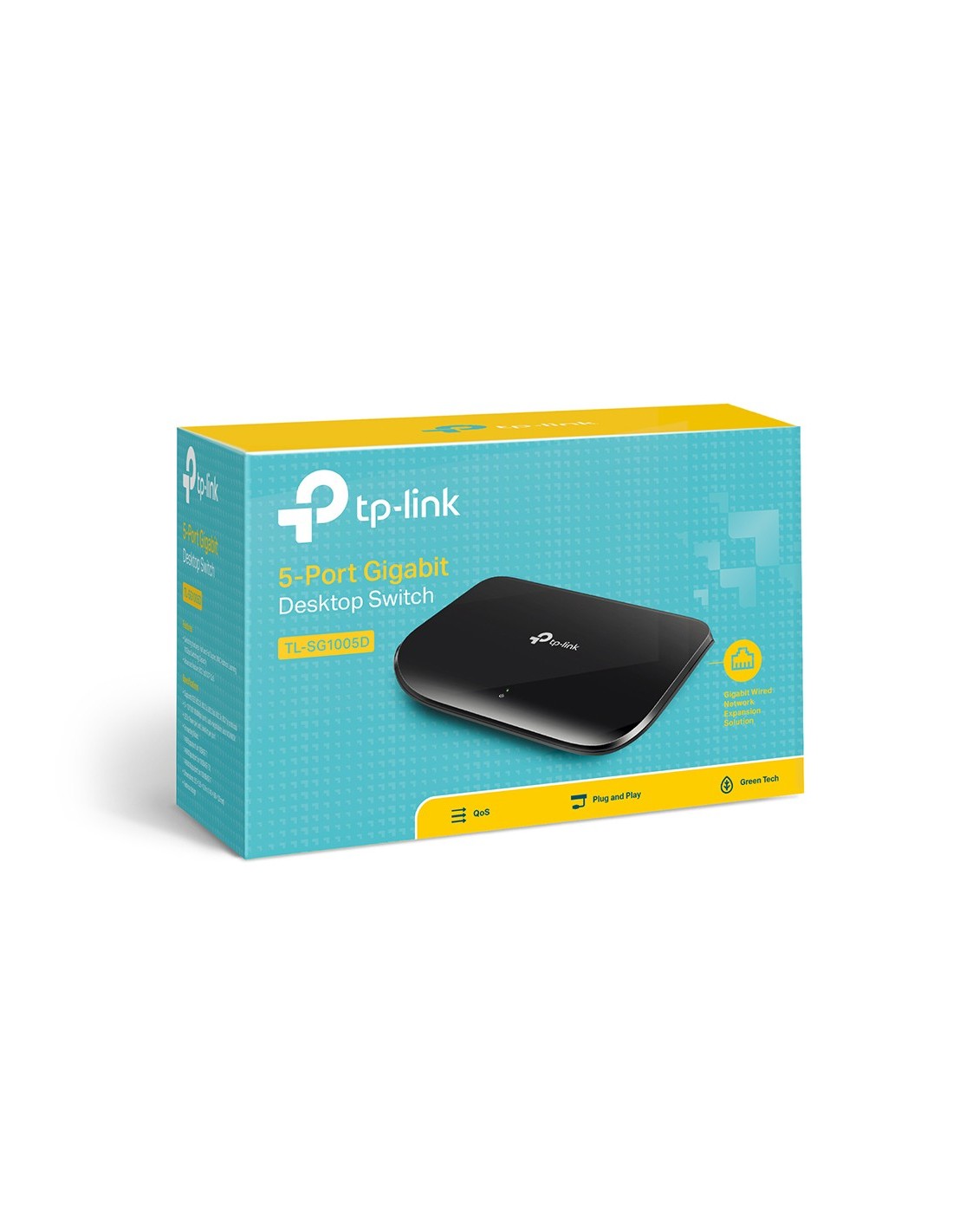 TP-Link TL-SG1005D. Tipo de interruptor: No administrado. Puertos tipo básico de conmutación RJ-45 Ethernet: Gigabit Ethernet (10/100/1000), Cantidad de puertos básicos de conmutación RJ-45 Ethernet: 5. Bidireccional completo (Full duplex). Tabla de direcciones MAC: 8000 entradas, Capacidad de conmutación: 10 Gbit/s. Estándares de red: IEEE 802.3, IEEE 802.3ab, IEEE 802.3u, IEEE 802.3x. Conector eléctrico: Toma de entrada de CC