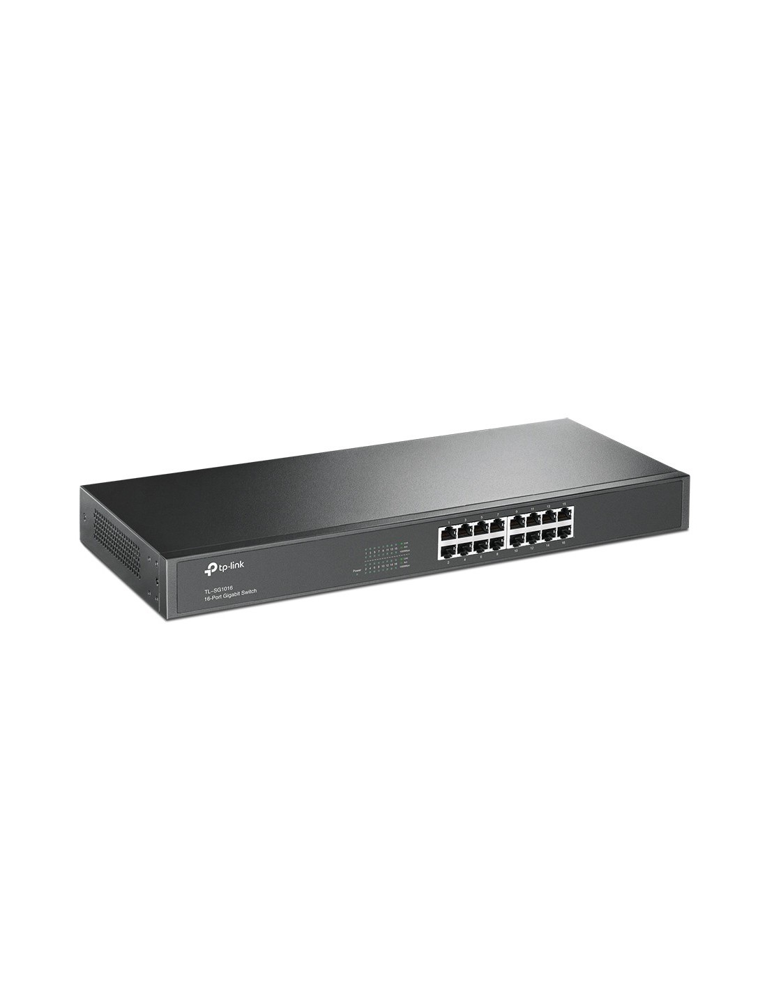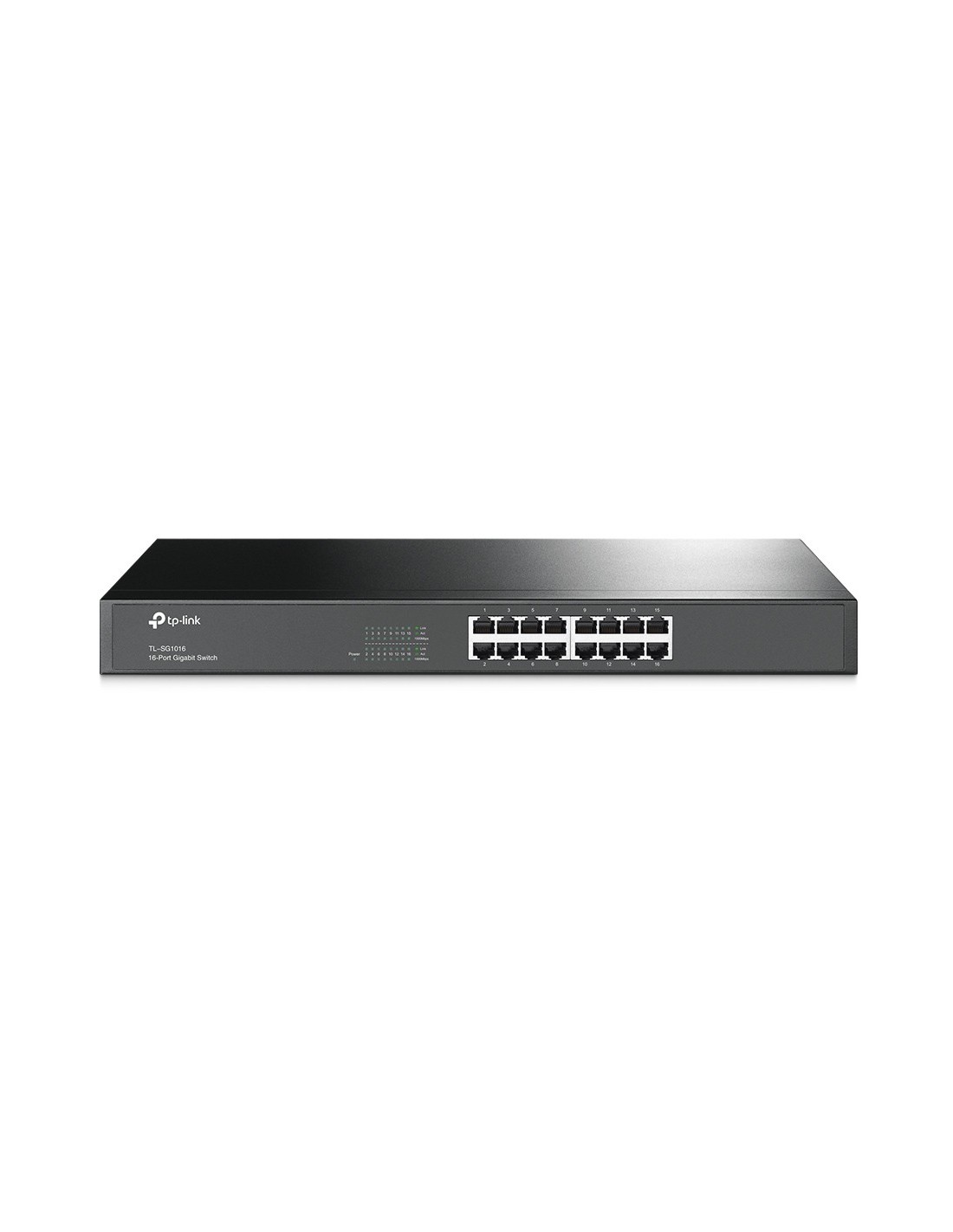 TP-Link TL-SG1016. Tipo de interruptor: No administrado. Puertos tipo básico de conmutación RJ-45 Ethernet: Gigabit Ethernet (10/100/1000), Cantidad de puertos básicos de conmutación RJ-45 Ethernet: 16. Bidireccional completo (Full duplex). Tabla de direcciones MAC: 8000 entradas, Capacidad de conmutación: 32 Gbit/s. Estándares de red: IEEE 802.1p, IEEE 802.3ab, IEEE 802.3i, IEEE 802.3u, IEEE 802.3x. Montaje en rack, Factor de forma: 1U