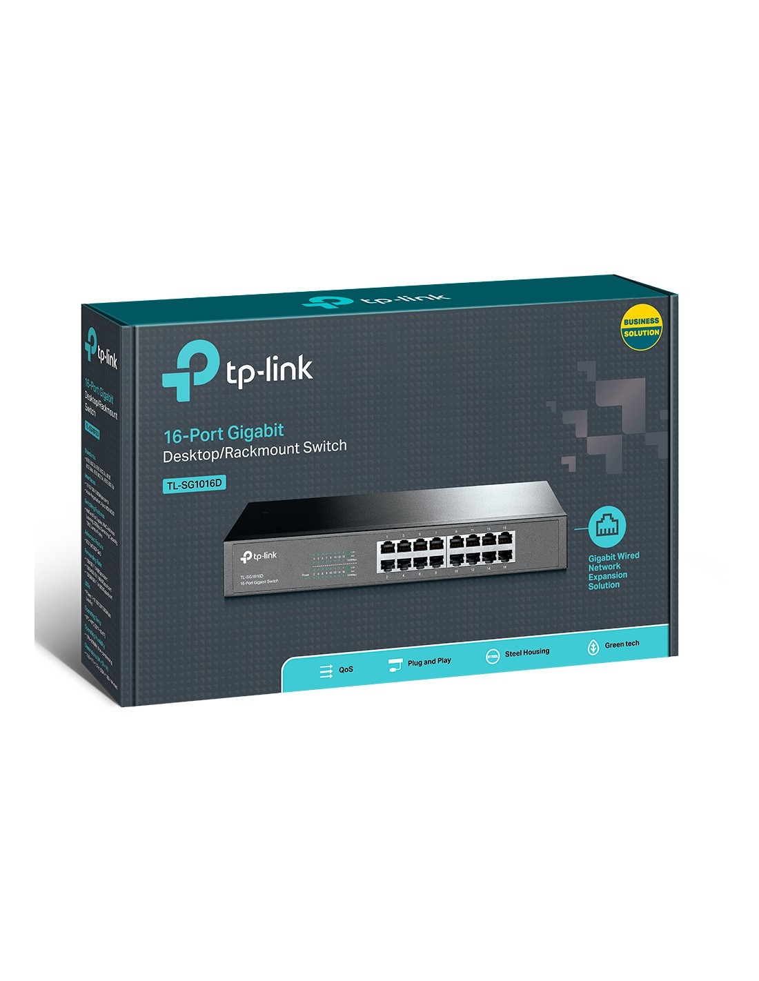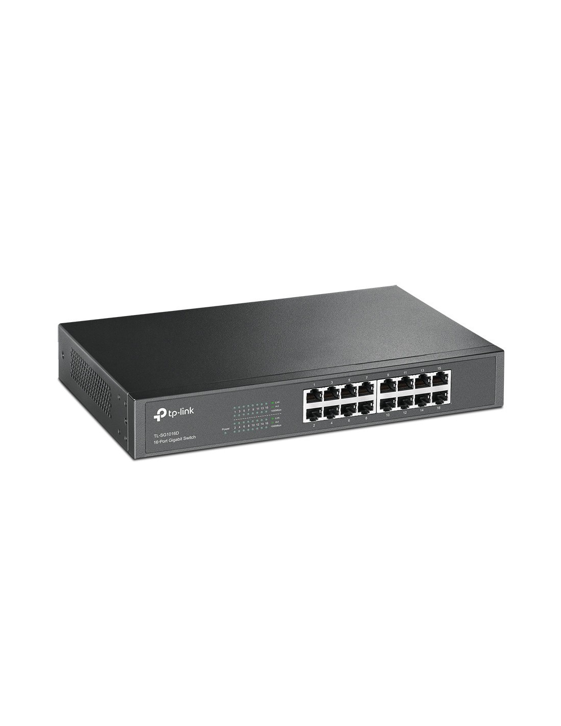 TP-Link TL-SG1016D. Tipo de interruptor: No administrado, Capa del interruptor: L2. Puertos tipo básico de conmutación RJ-45 Ethernet: Gigabit Ethernet (10/100/1000), Cantidad de puertos básicos de conmutación RJ-45 Ethernet: 16. Bidireccional completo (Full duplex). Tabla de direcciones MAC: 8000 entradas, Capacidad de conmutación: 32 Gbit/s. Estándares de red: IEEE 802.1Q, IEEE 802.1p, IEEE 802.3, IEEE 802.3ab, IEEE 802.3u, IEEE 802.3x. Conector eléctrico: Toma de entrada de CC. Montaje en rack