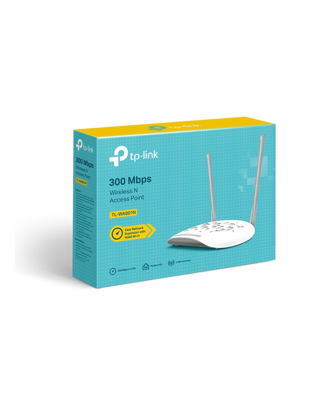 TP-Link TL-WA801N. 2,4 GHz, Rango máximo de transferencia de datos: 300 Mbit/s. Algoritmos de seguridad soportados: WPA, WPA-PSK, WPA2, WPA2-PSK. Ethernet LAN, velocidad de transferencia de datos: 10,100 Mbit/s. Energía sobre Ethernet (PoE). Color del producto: Blanco