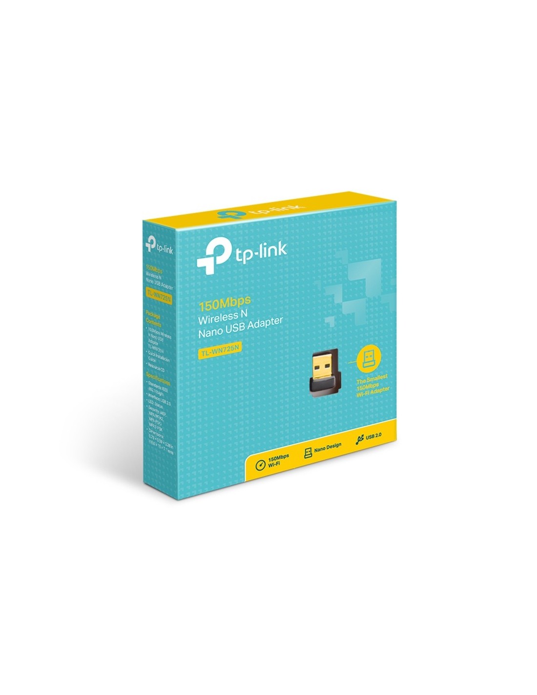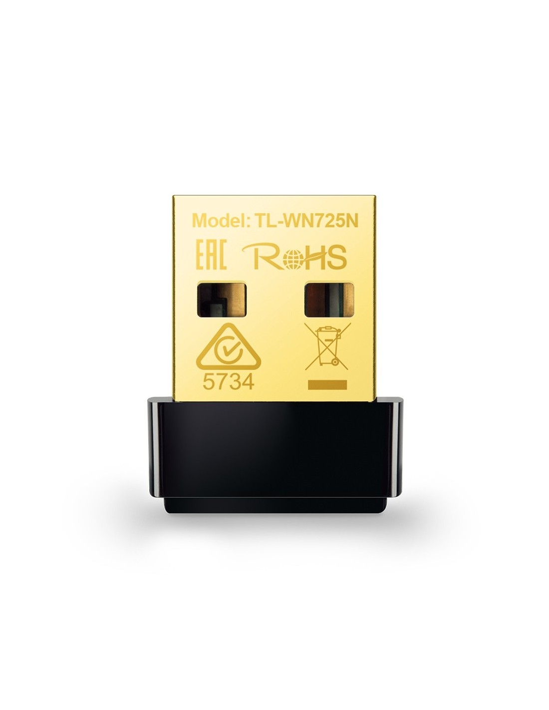 TP-Link TL-WN725N. Tecnología de conectividad: Inalámbrico, Interfaz de host: USB, Interfaz: WLAN. Rango máximo de transferencia de datos: 150 Mbit/s, Estándar Wi-Fi: Wi-Fi 4 (802.11n), Banda Wi-Fi: Banda única (2,4 GHz). USB con suministro de corriente. Color del producto: Negro