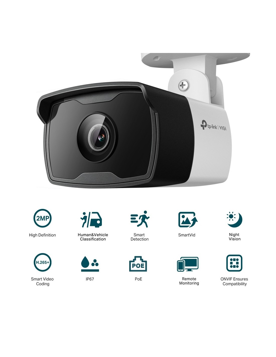 TP-Link VIGI C320I. Tipo: Cámara de seguridad IP, Colocación soportada: Exterior, Tecnología de conectividad: Alámbrico. Tipo de montaje: Techo/Pared/Poste, Color del producto: Negro, Blanco, Factor de forma: Bombilla. Iluminación mínima: 0,1 lx, Ángulo de visión de la lente, diagonal: 106.9°. Tipo de sensor: CMOS, Tamaño del sensor óptico: 25,4 / 3 mm (1 / 3"). Diámetro de lente: 2,8 mm