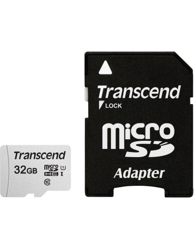 Transcend microSDHC 300S 32GB. Capacidad: 32 GB, Tipo de tarjeta flash: MicroSDHC, Clase de memoria flash: Clase 10, Tipo de memoria interna: NAND, Velocidad de lectura: 95 MB/s, Velocidad de escritura: 25 MB/s, Clase de velocidad UHS: Class 1 (U1). Funciones de protección: A prueba de salpicaduras, Anti-estática, Resistente a la temperatura, Resistente al agua, A..., Color del producto: Plata
