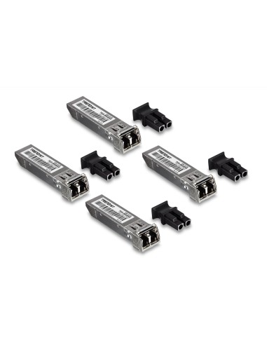 El módulo LC multimodo SFP, Pack de 4, de TRENDnet, modelo TEG-MGBSX/4, incluye cuatro modulos SFP Gigabit de fibra que son compatibles con las ranuras SFP estándar presentes en switches de red y convertidores de medios. Cada módulo SFP multimodo está equipado con una interfaz de conexión de fibra dúplex LC y admite conexiones de fibra multimodo Gigabit para aplicaciones de redes de larga distancia.