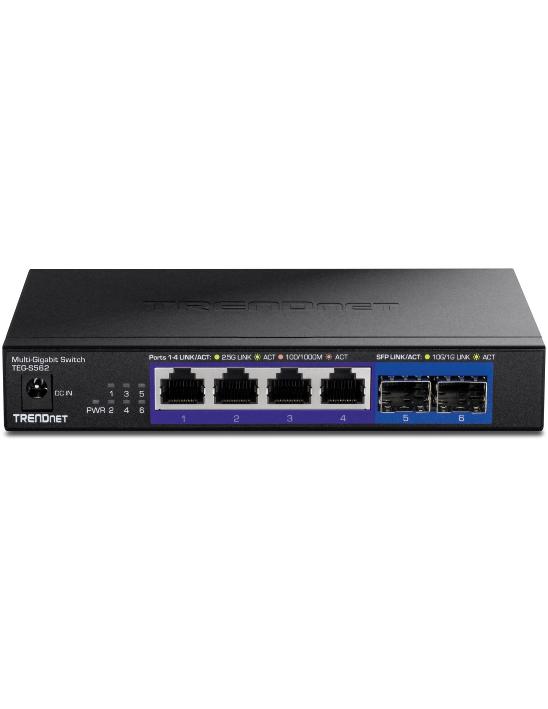 Trendnet TEG-S562. Tipo de interruptor: No administrado. Puertos tipo básico de conmutación RJ-45 Ethernet: 2.5G Ethernet (100/1000/2500), Cantidad de puertos básicos de conmutación RJ-45 Ethernet: 4. Bidireccional completo (Full duplex). Tabla de direcciones MAC: 4000 entradas, Capacidad de conmutación: 60 Gbit/s. Estándares de red: IEEE 802.1x, IEEE 802.3ab, IEEE 802.3ae, IEEE 802.3an, IEEE 802.3bz
