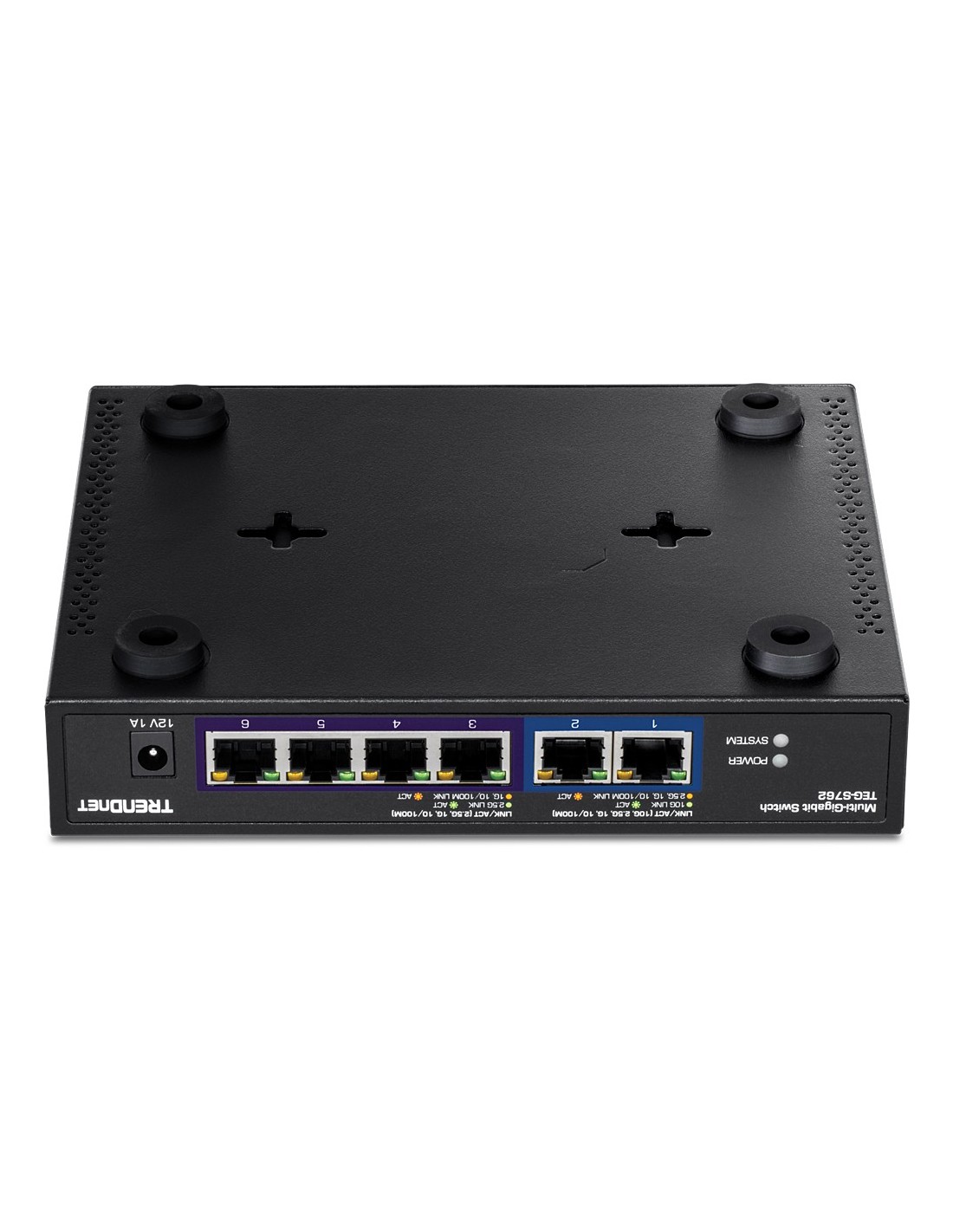 El switchTRENDnet Multi-Gigabit de 6 puertos, modelo TEG-S762, es un switch Multi-Gigabit fácil de usar y confiable que proporciona un rendimiento avanzado de alto ancho de banda. El switch Multi-Gigabit TEG-S762 ofrece dos puertos 10G dedicados y cuatro puertos 2.5G dedicados para conexiones de red de alta velocidad con una capacidad de conmutación de 60Gbps. Presenta una robusta carcasa metálica compacta y un diseño sin ventilador. Este switch Multi-Gigabit es una solución económica para conexiones de red alta velocidad de 10 gigabits.