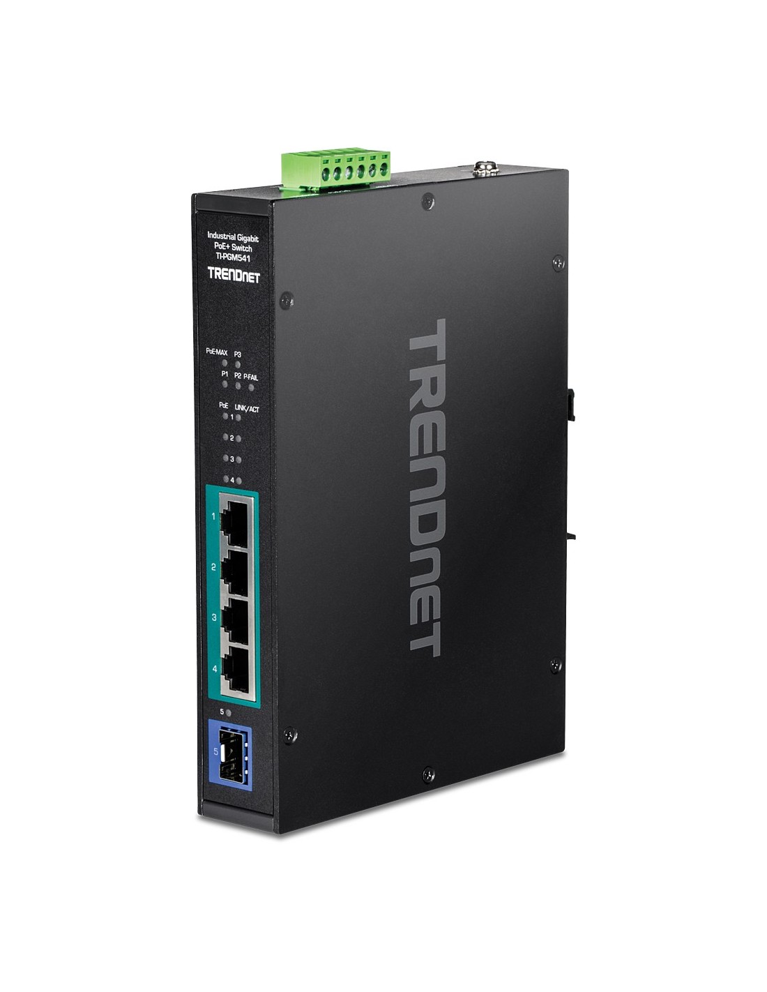 El switch industrial raíl DIN PoE+ Gigabit de 5 puertos de TRENDnet -20° – 65°C (-4° – 149°F), modelo TI-PGM541, tiene cuatro puertos PoE+ Gigabit con una potencia PoE total de 120W, más una ranura SFP Gigabit para aplicaciones de fibra de larga distancia. Los usuarios pueden conectar cuatro dispositivos PoE+ al switch y contar aún con una ranura SFP gigabit para conexiones de red adicionales. Este switch está equipado con una carcasa metálica con clasificación IP30, diseñada para funcionar en un amplio rango de temperaturas de -20° – 65°C (-4° – 149°F) para entornos industriales difíciles.