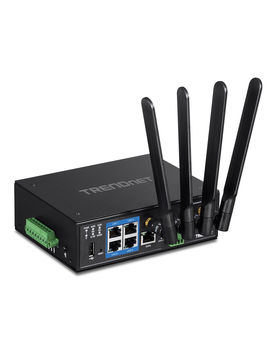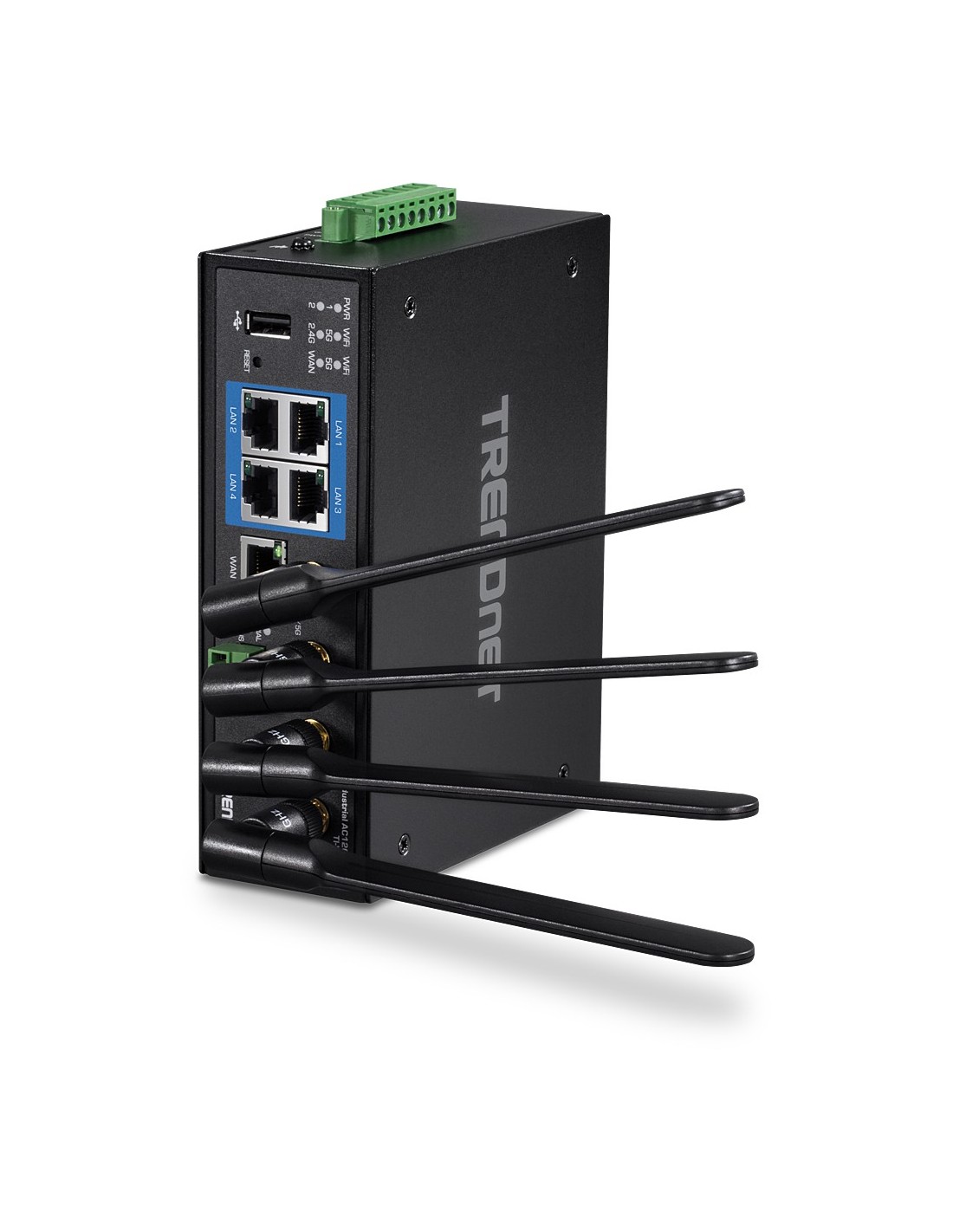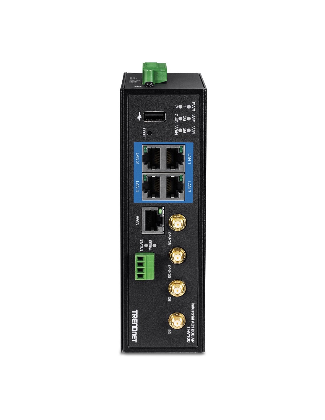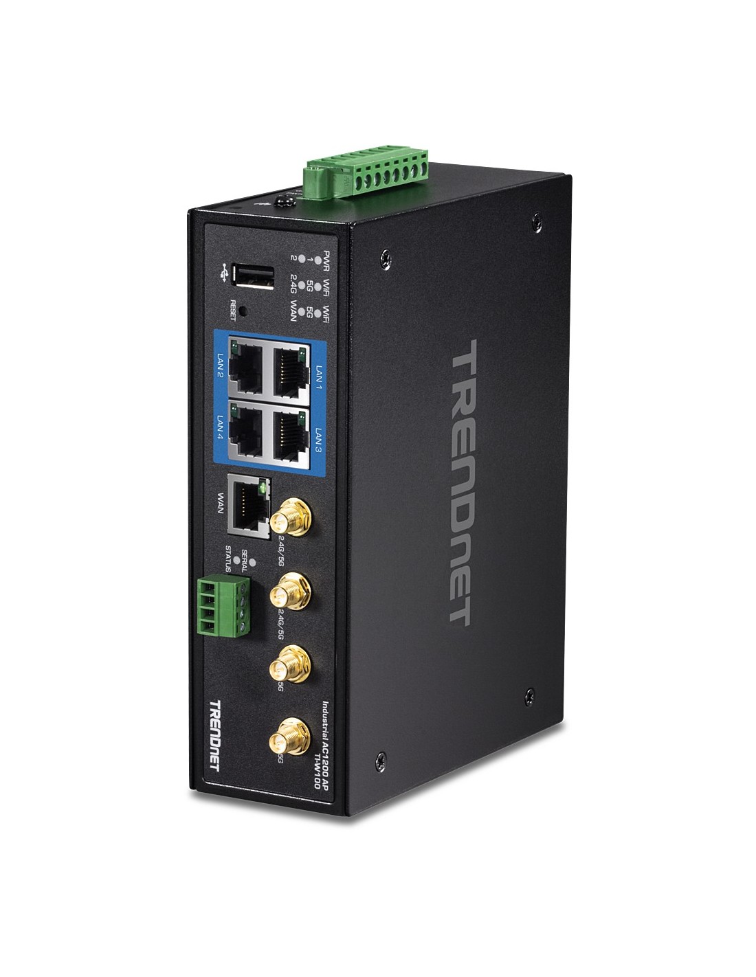 El router Gigabit de banda dual wireless AC1200 industrial de TRENDnet, modelo TI-W100, dispone de WiFi AC1200 de banda dual para maximizar las velocidades de red del dispositivo; está equipado con una red AC inalámbrica a 867 Mbps y una red N inalámbrica a 300 Mbps. El router WiFi Industrial admite conexiones híbridas doble WAN (Ethernet y WiFi) para modos de balance o tolerancia a fallos (failover) y acceso encriptado a red privada virtual (VPN) para usuarios remotos. El router de categoría industrial está equipado con una carcasa de metal con clasificación IP30 y está diseñado para funcionar dentro de un amplio intervalo de temperaturas (de -30° a 70° C (-22° a 158° F) en entornos industriales extremos.