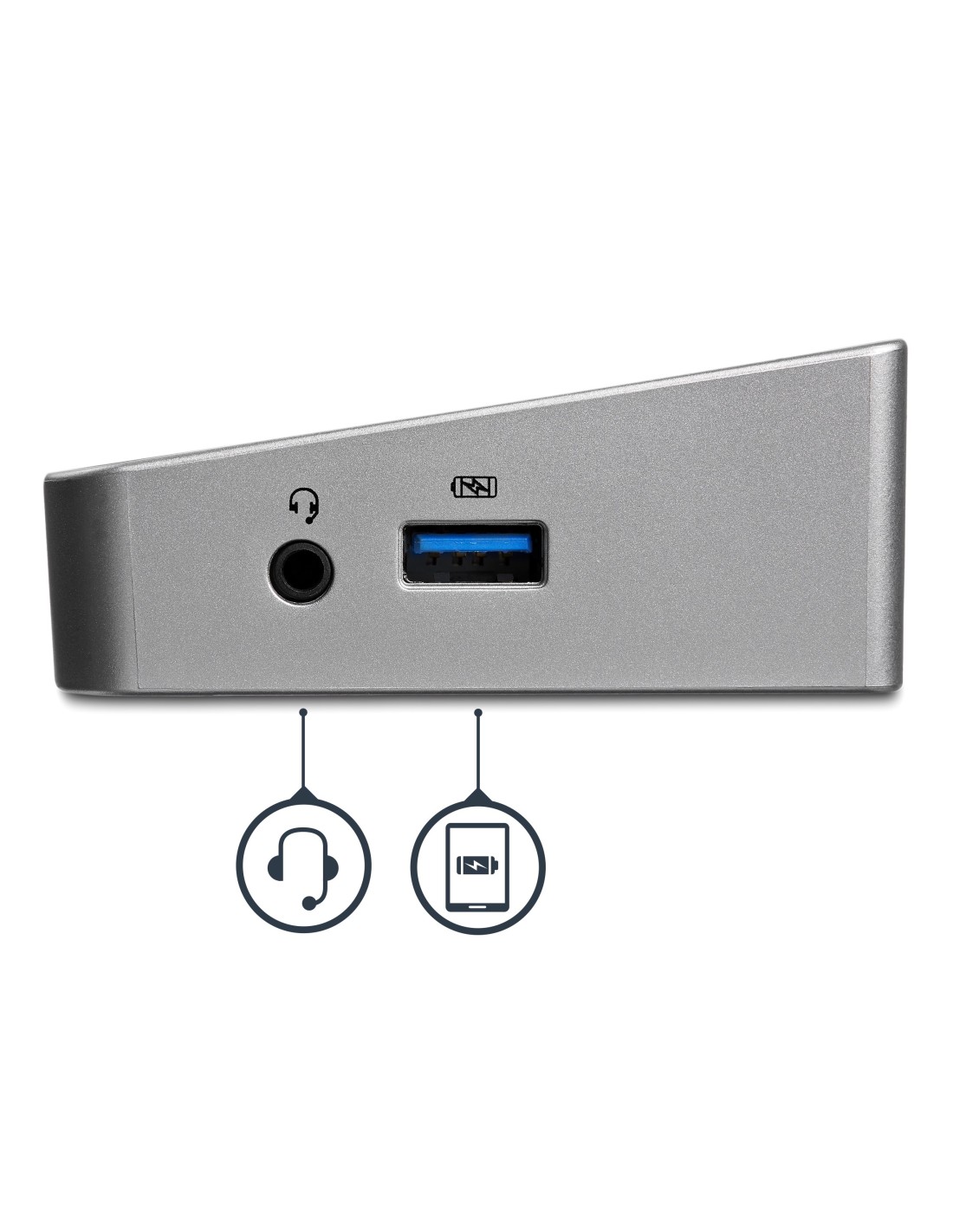StarTech.com Docking Station USB 3.0 2x DisplayPort y HDMI 4K para 3 Monitores - Hub 5x USB-A (1x Fast Charge) - Audio de 3,5mm - Red GbE - Replicador de Puertos USB-A - Mac y Windows. Tecnología de conectividad: Alámbrico, Interfaz de host: USB 3.2 Gen 1 (3.1 Gen 1) Type-A, Auriculares: 3,5 mm. Ethernet LAN, velocidad de transferencia de datos: 10,100,1000 Mbit/s, Estándares de red: IEEE 802.3, IEEE 802.3ab, IEEE 802.3u. Color del producto: Negro, Plata, Velocidad de transferencia de datos: 5 Gbit/s, Resolución (máxima digital): 3840 x 2160 Pixeles. Voltaje de entrada AC: 100-240 V, Corriente de entrada: 1.5 A, Voltaje de salida: 5 V. Sistema operativo Windows soportado: Windows 10, Windows 10 Education, Windows 10 Education x64, Windows 10 Enterprise, Windows 10..., Sistema operativo MAC soportado: Mac OS X 10.11 El Capitan, Mac OS X 10.12 Sierra, Mac OS X 10.14 Mojave, Mac OS X 13.0 Ventura, Otros sistemas operativos soportados: ChromeOS