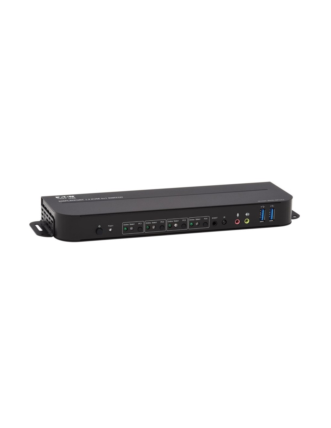 Tripp Lite B005-DPUA4 KVM DisplayPort / USB de 4 Puertos - 4K 60 Hz, HDR, HDCP 2.2, IR, DP 1.4, Compartido de USB. Tipo de puerto de teclado: USB, Tipo de puerto de ratón: USB, Tipo de puerto de vídeo: HDMI/DisplayPort. Tipo HD: 4K Ultra HD, Máxima resolución: 4096 x 2160 Pixeles, Ancho de banda de vídeo: 60 Hz. Color del producto: Negro, Material de la carcasa: Metal, Certificación: CE, FCC, REACH. Fuente de energía: Corriente alterna, Voltaje de entrada: 100 - 240 V, Frecuencia de entrada AC: 50 - 60 Hz. Certificados de conformidad: RoHS