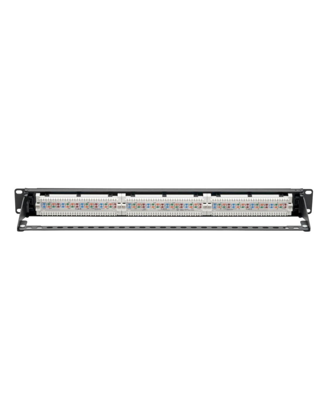 Tripp Lite N252-P24 Panel de Conexiones Cat6 de 24 Puertos – Cumple con PoE+, 110 / Krone, 568A/B, RJ45 Ethernet, Instalación en 1U de Rack. Conector: RJ-45, Tipos de cable soportados: Cat5, Cat5e, Cat6. Color del producto: Negro, Montaje: Montaje en bastidor, Capacidad del rack: 1U. Voltaje de entrada: 110 V. Certificados de conformidad: RoHS. Ancho: 479,8 mm, Altura: 43,9 mm, Profundidad: 111,3 mm