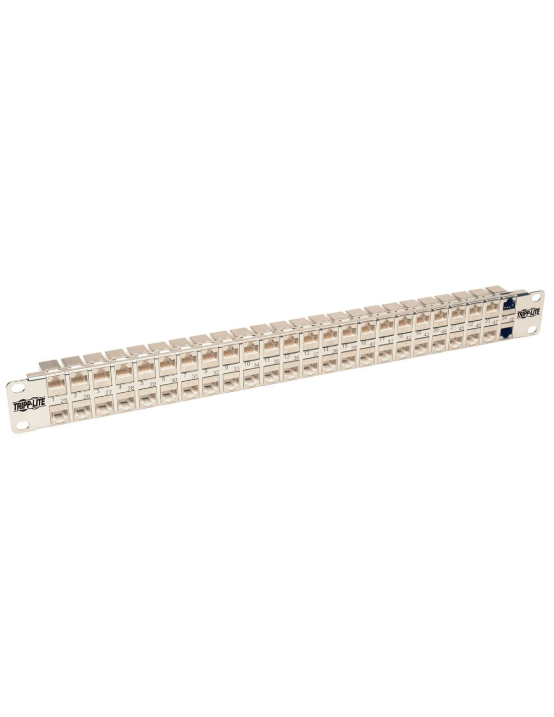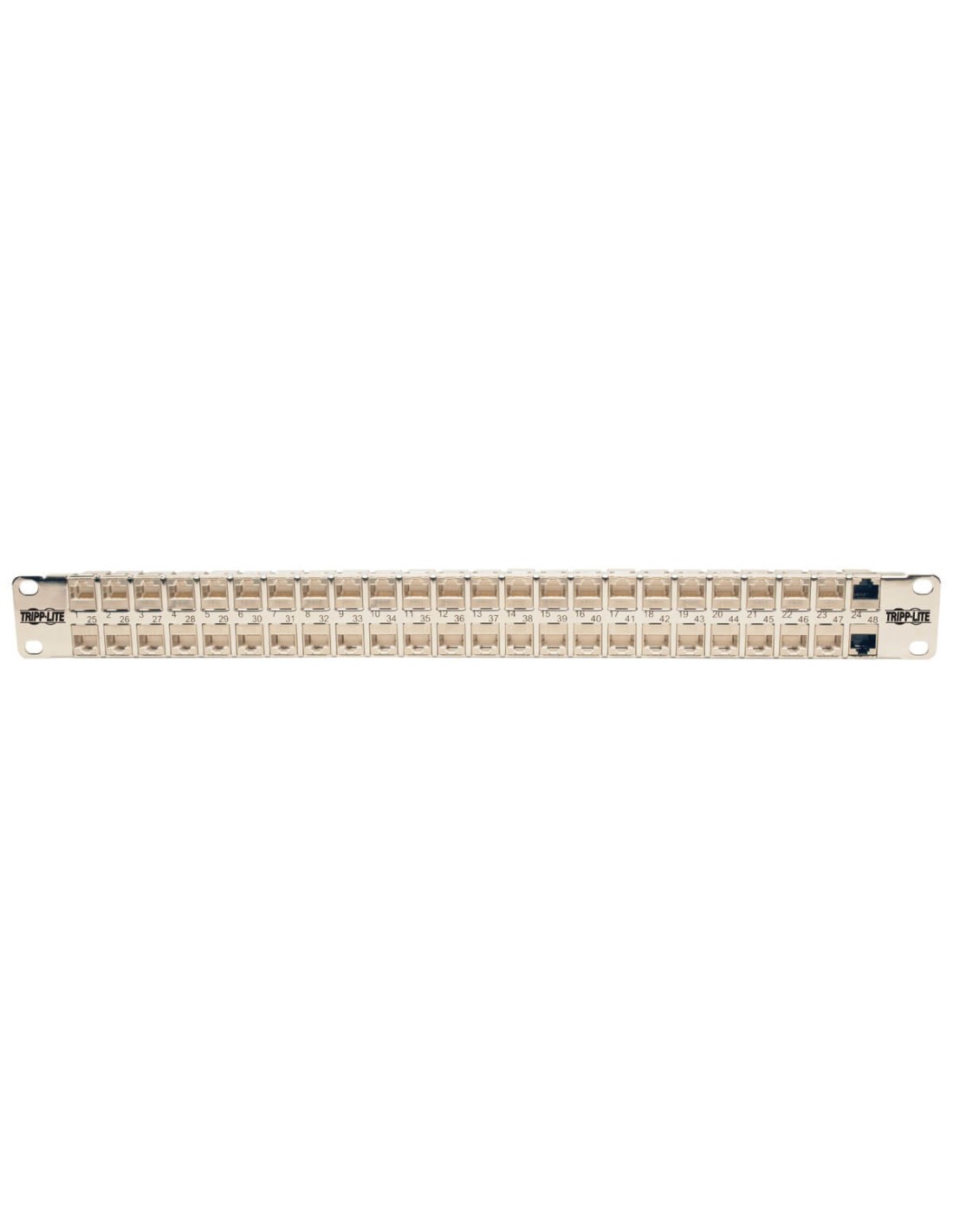 Tripp Lite N254-048-SH-6A Panel de Conexiones de Alimentación Cat6a, Ethernet RJ45, Blindado STP de 48 Puertos para Instalación en 1U de Rack, 10 Gigabit Ethernet, RJ-45, Cat6a, Plata, Blanco, Montaje en bastidor, 1U