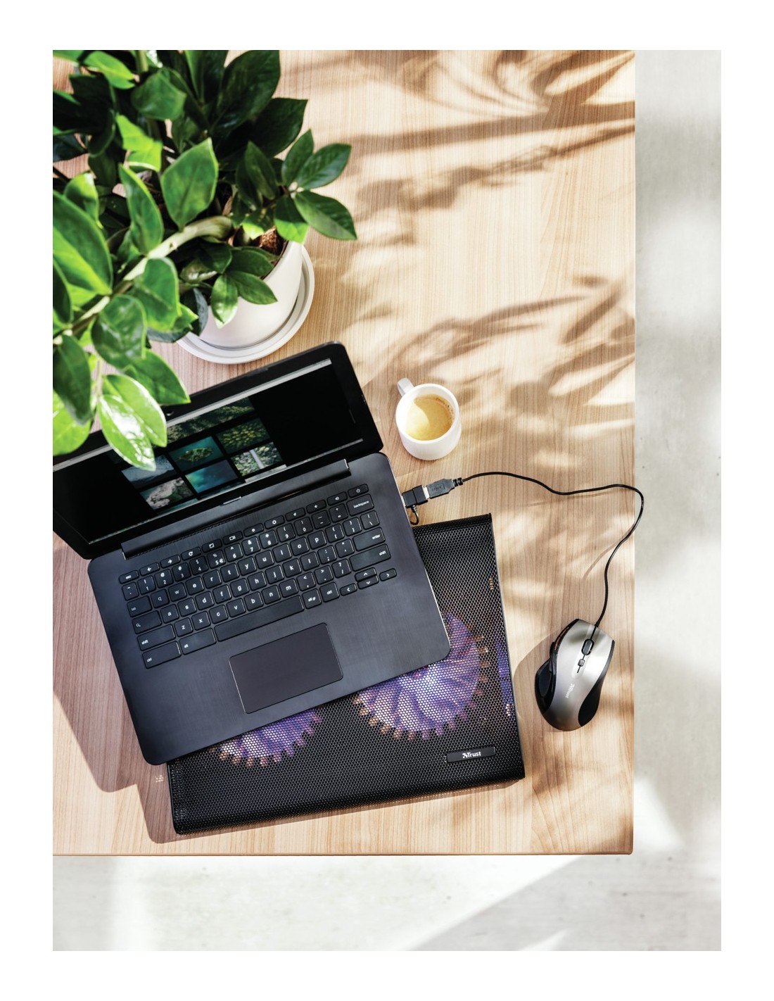 Trust 20104. Tamaño máximo de pantalla: 43,9 cm (17.3"), Número de ventiladores incluidos: 2 pieza(s). Color del producto: Negro, Iluminación de color: Azul. Interfaz de host: USB. Alimentación: USB. Peso: 640 g