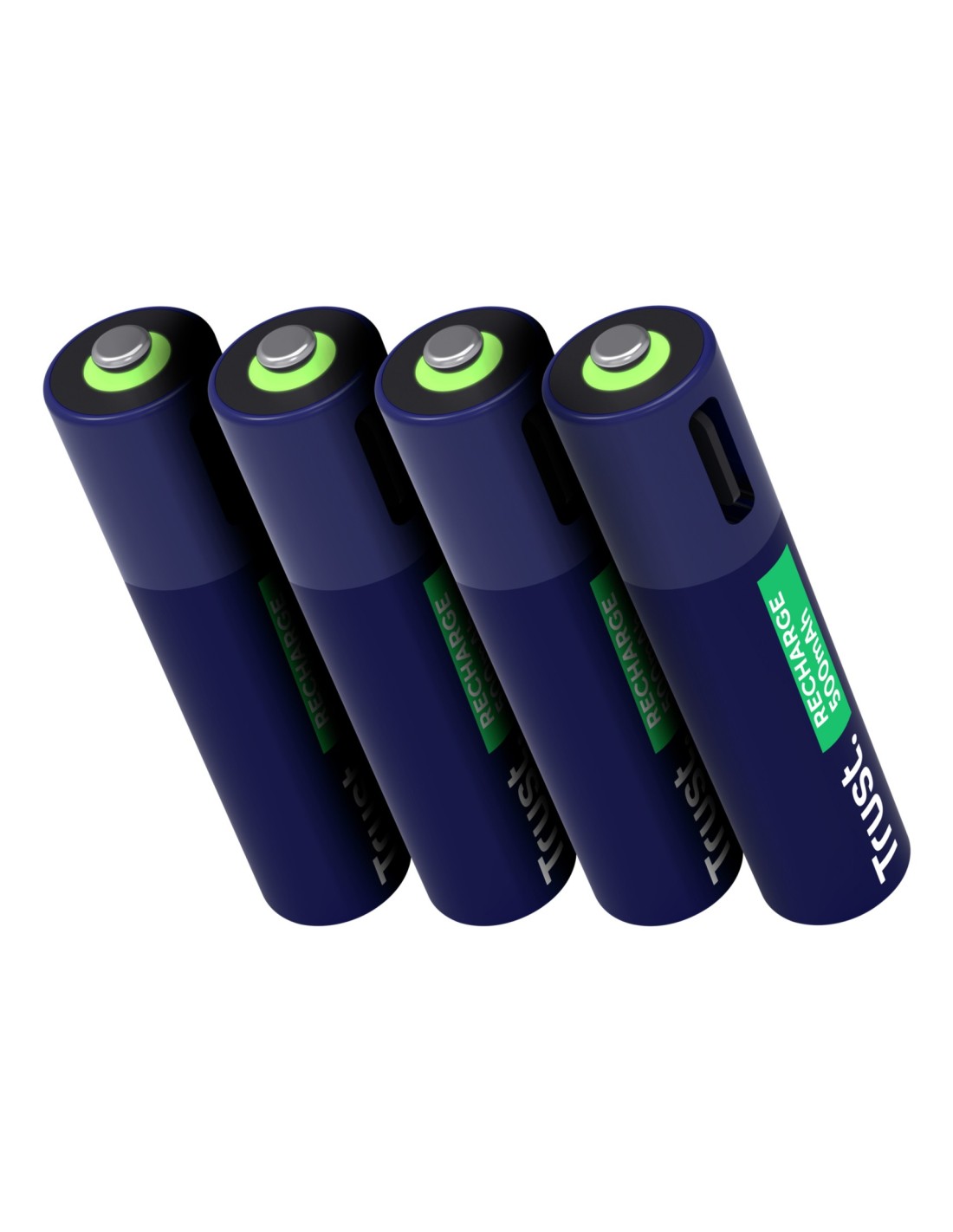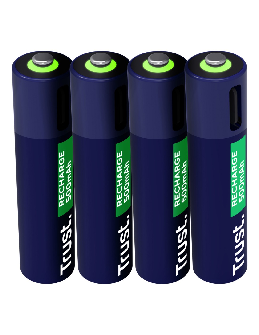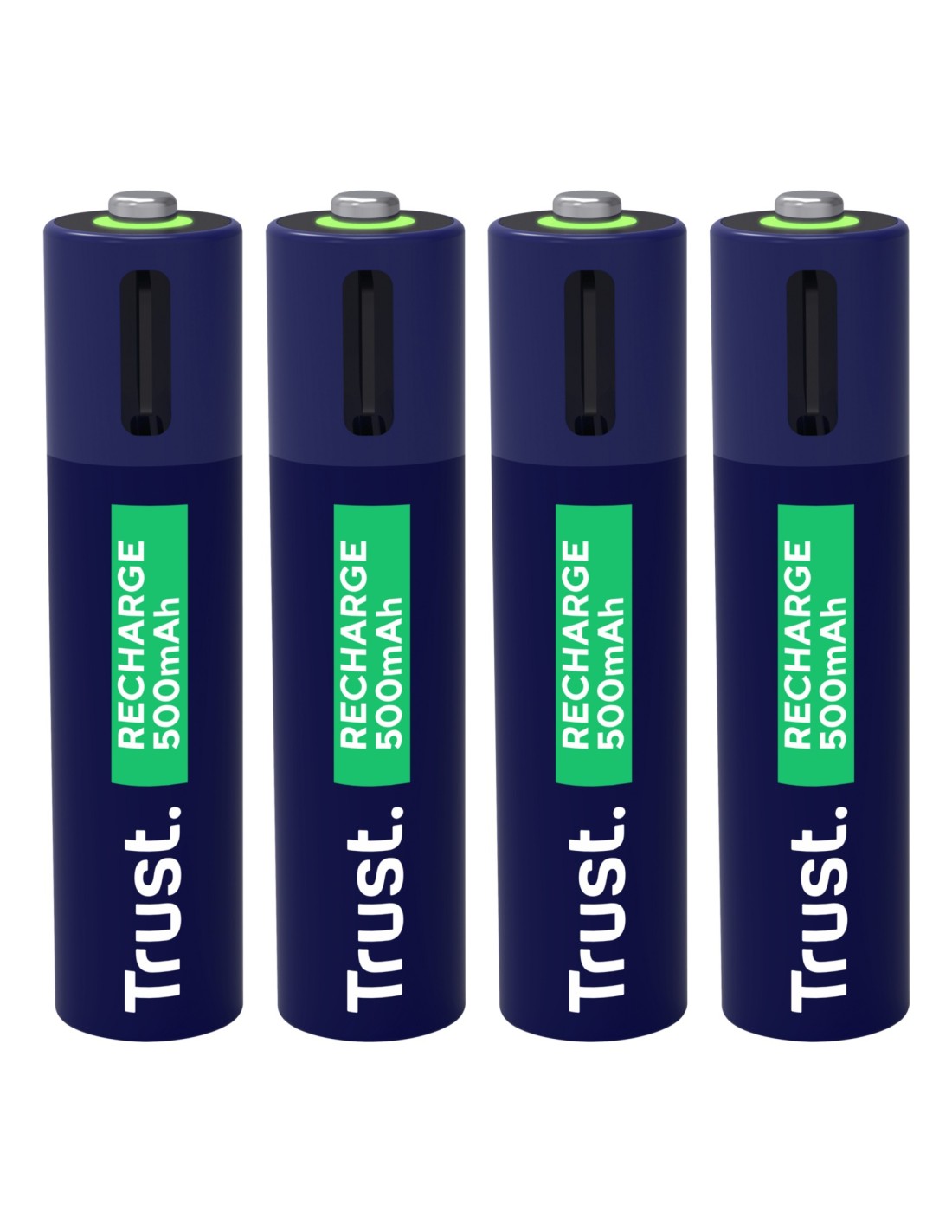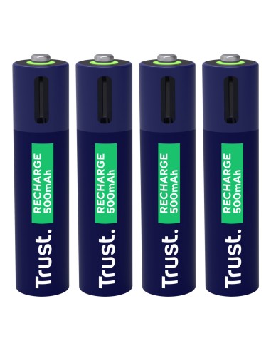 Trust 25671. Tipo de batería: Batería recargable, Tamaño(s) de la pila: AAA, Número de baterías incluidas: 4 pieza(s). Altura: 44 mm, Diámetro: 1 cm, Peso: 7 g. Peso del paquete: 28 g, Tipo de embalaje: Blister. Periodo de garantía: 2 año(s)