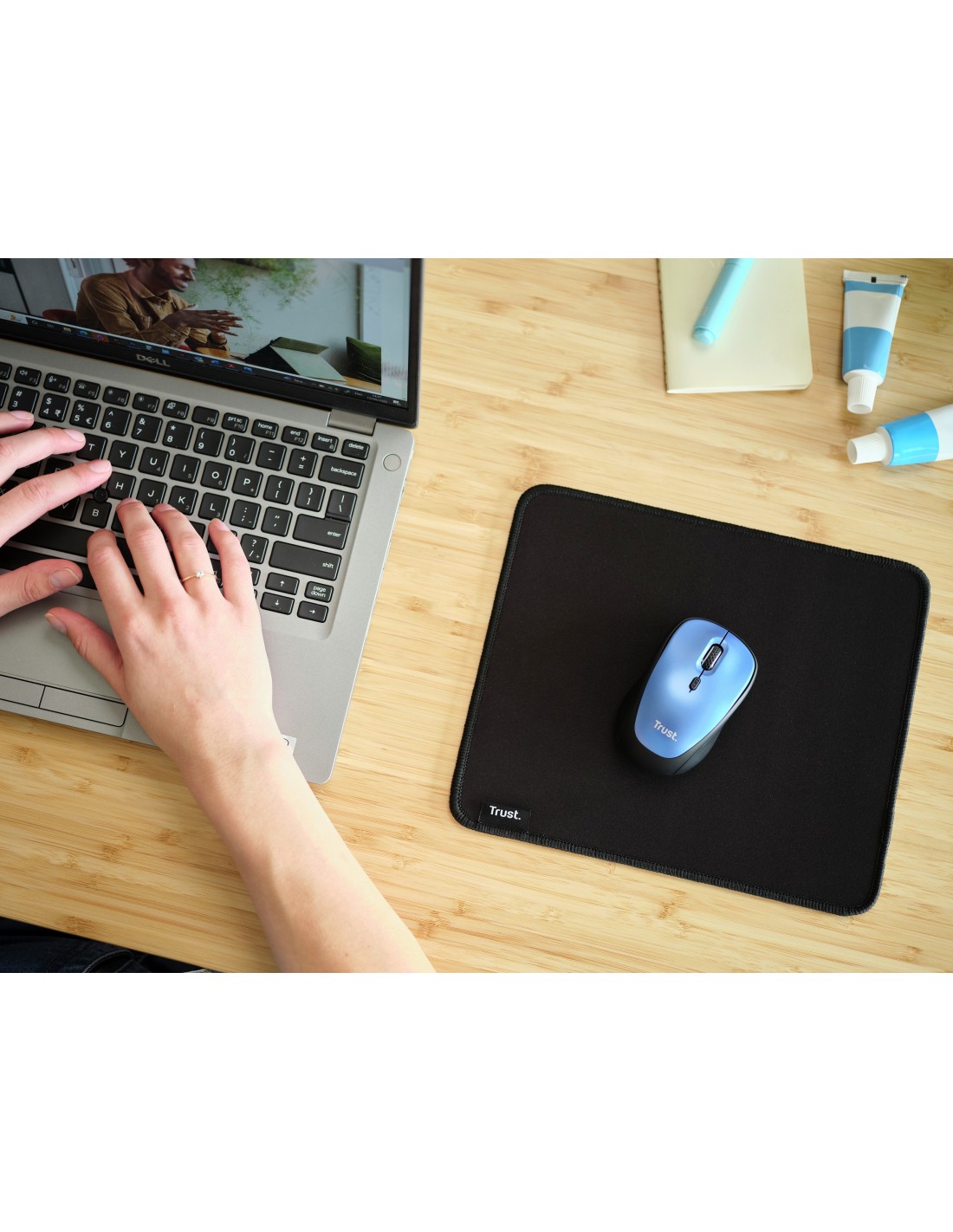 Trust Boye. Ancho: 250 mm, Profundidad: 210 mm. Color del producto: Negro, Coloración de superficie: Monocromo, Material: Tereftalato de polietileno (PET), Caucho, Bordes rematados