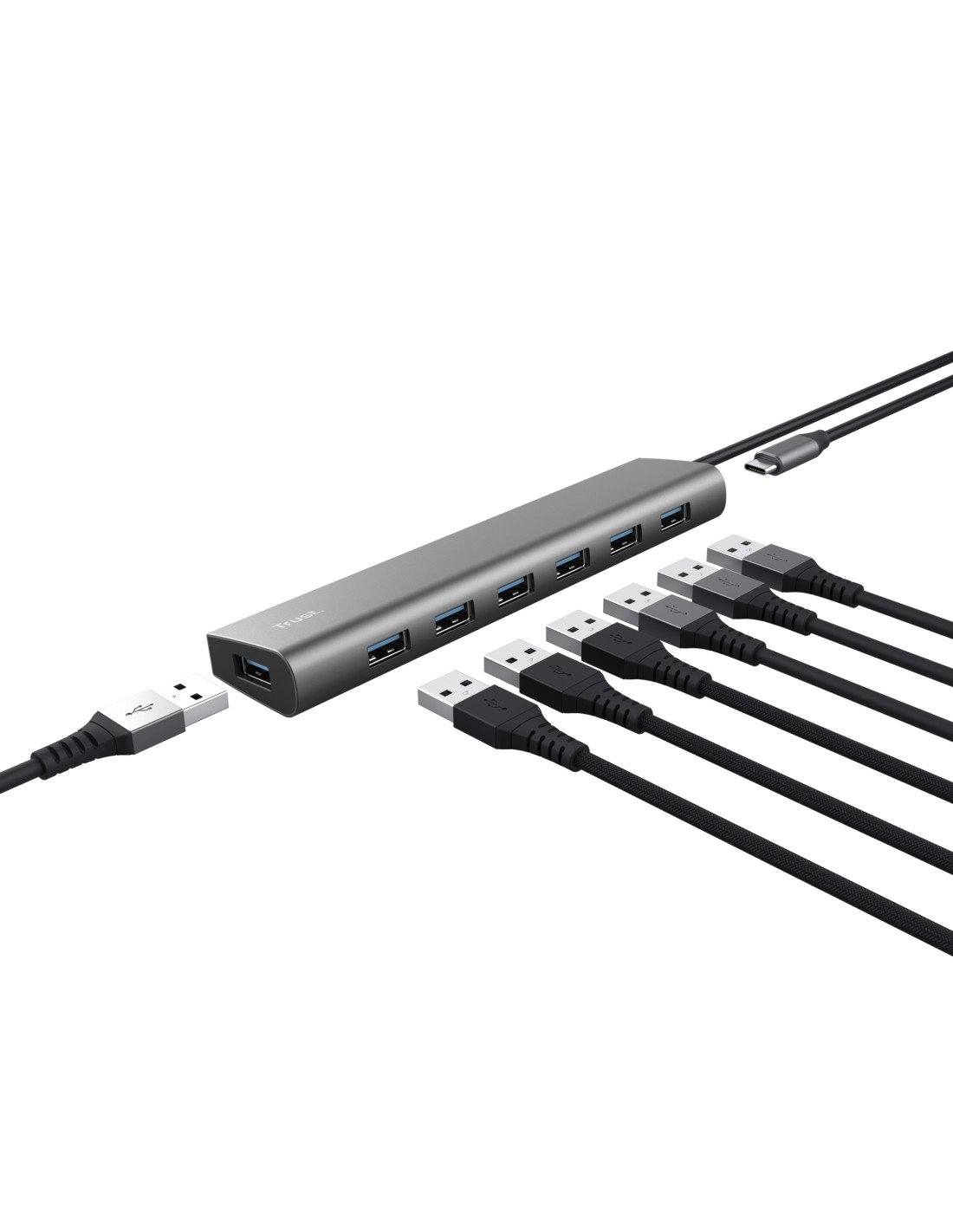 Trust Halyx, USB 3.2 Gen 1 (3.1 Gen 1) Type-A, USB 2.0, USB 3.2 Gen 1 (3.1 Gen 1) Type-A, 5000 Mbit/s, Plata, Acrilonitrilo butadieno estireno (ABS), Aluminio, 0,8 m
