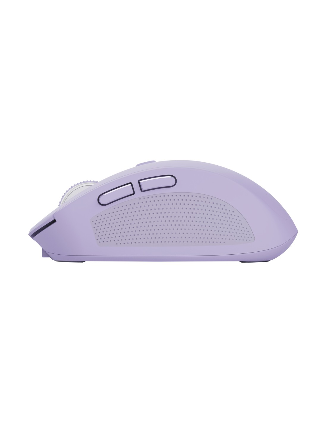 Trust Ozaa. Factor de forma: mano derecha. Tecnología de detección de movimientos: Óptico, Interfaz del dispositivo: RF Wireless + Bluetooth, Resolución de movimiento: 3200 DPI, Tipo de botones: Botones presionados, Cantidad de botones: 6, Tipo de desplazamiento: Rueda. Fuente de energía: Baterías. Color del producto: Lila