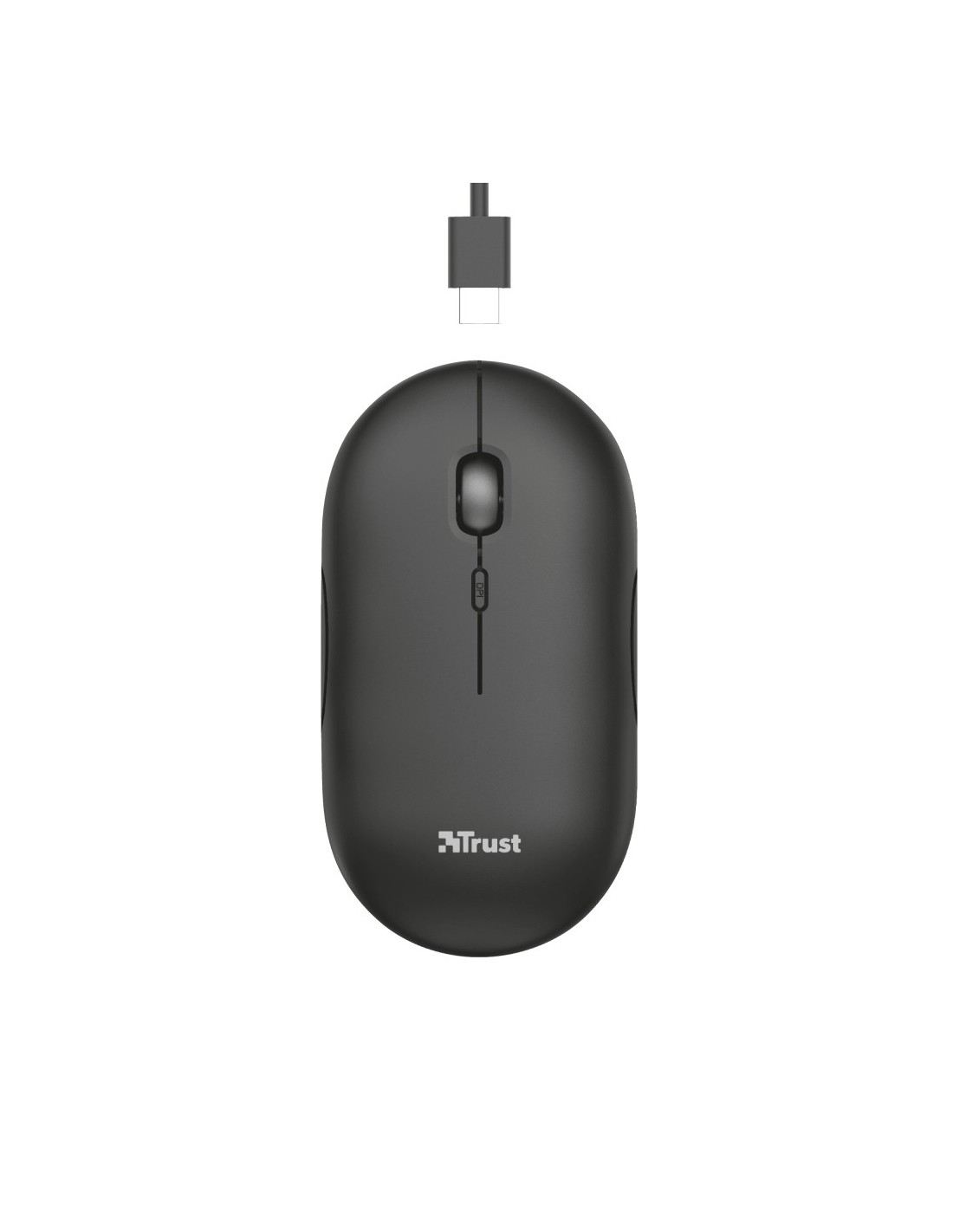 Trust Puck. Factor de forma: Ambidextro. Tecnología de detección de movimientos: Óptico, Interfaz del dispositivo: RF Wireless + Bluetooth, Resolución de movimiento: 1600 DPI, Tipo de botones: Botones presionados, Cantidad de botones: 4, Tipo de desplazamiento: Rueda. Fuente de energía: Baterías. Color del producto: Negro
