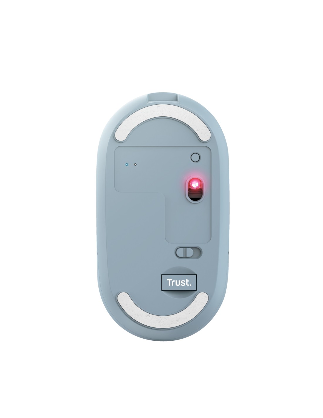 Trust Puck. Factor de forma: Ambidextro. Interfaz del dispositivo: RF Wireless + Bluetooth, Resolución de movimiento: 1600 DPI, Tipo de botones: Botones presionados, Cantidad de botones: 4, Tipo de desplazamiento: Rueda. Fuente de energía: Baterías. Color del producto: Azul
