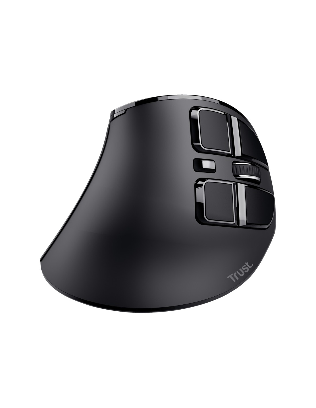Trust Voxx. Factor de forma: mano derecha, Diseño vertical. Tecnología de detección de movimientos: Óptico, Interfaz del dispositivo: RF Wireless + Bluetooth, Resolución de movimiento: 2400 DPI, Tipo de botones: Botones presionados, Cantidad de botones: 8, Tipo de desplazamiento: Rueda. Fuente de energía: Baterías. Color del producto: Negro