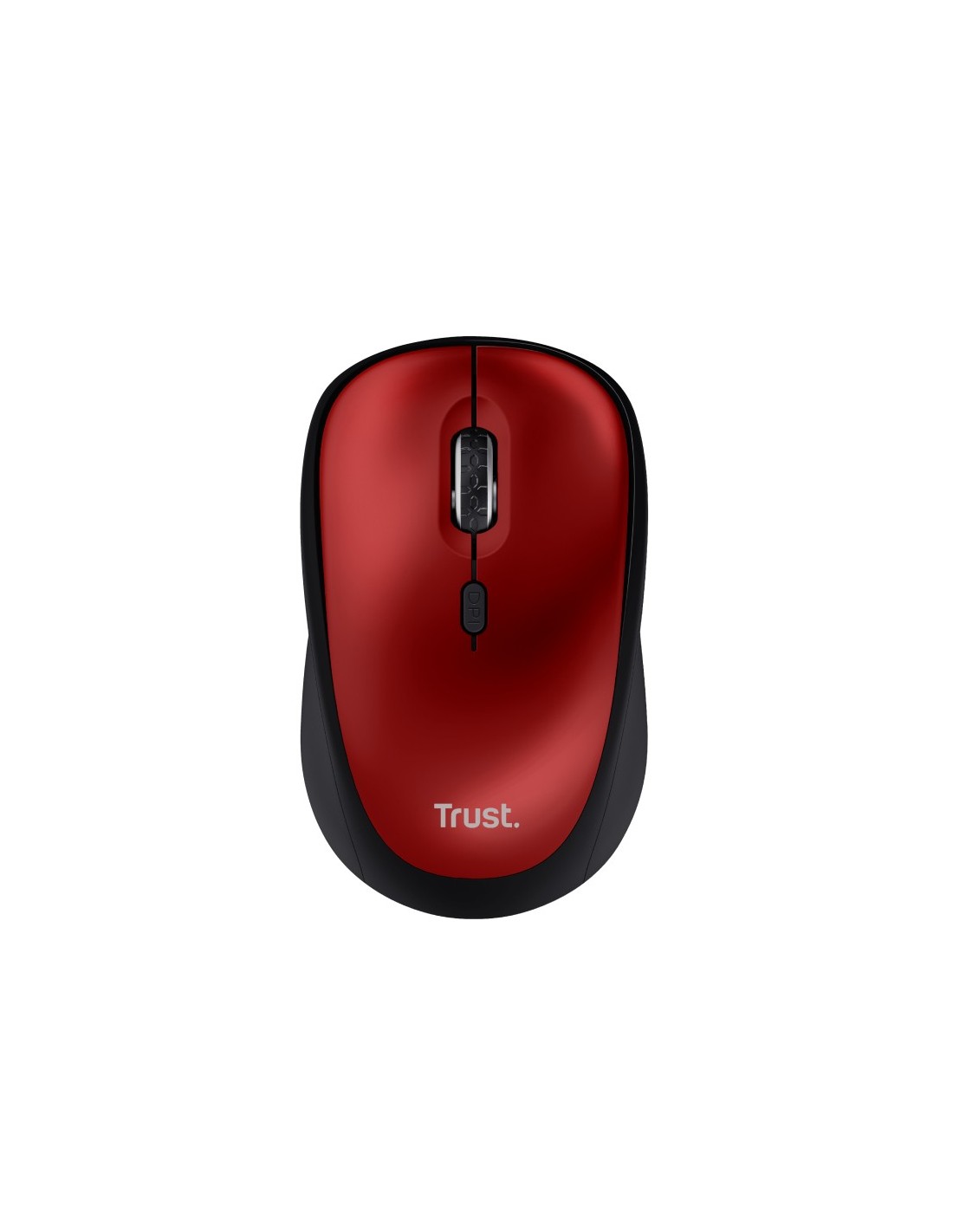 Trust Yvi+. Factor de forma: mano derecha. Tecnología de detección de movimientos: Óptico, Interfaz del dispositivo: RF inalámbrico, Resolución de movimiento: 1600 DPI, Tipo de botones: Botones presionados, Cantidad de botones: 4, Tipo de desplazamiento: Rueda. Fuente de energía: Baterías. Color del producto: Negro, Rojo