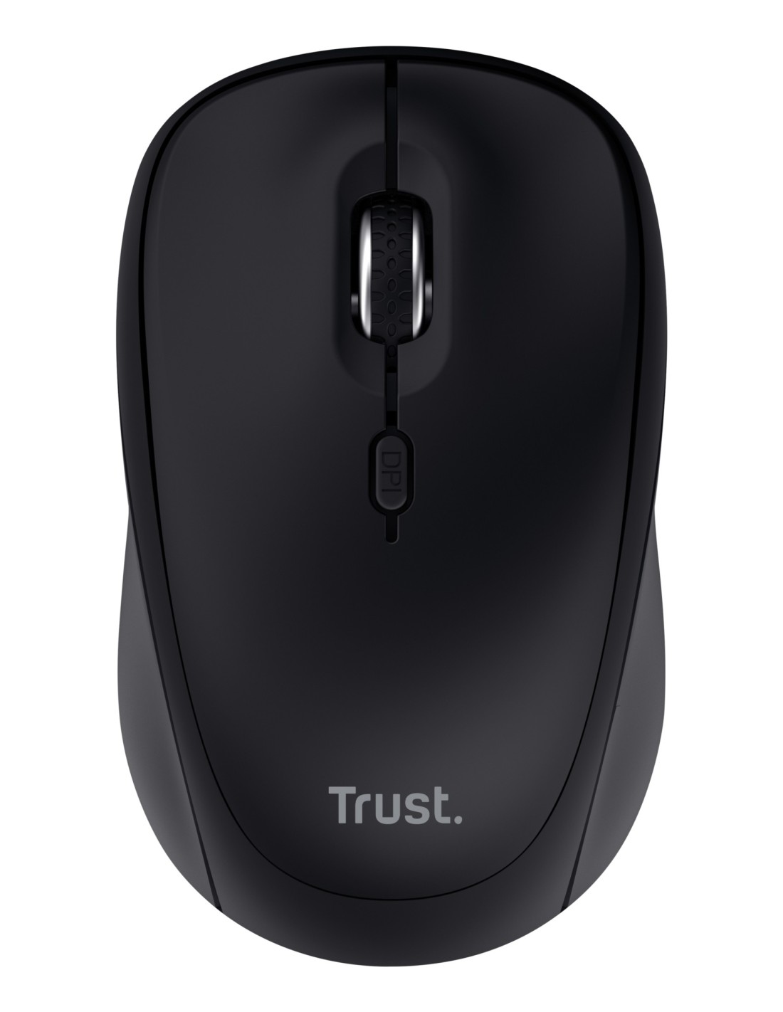 Trust Yvi+. Factor de forma: Ambidextro. Tecnología de detección de movimientos: Óptico, Interfaz del dispositivo: RF Wireless + Bluetooth, Resolución de movimiento: 1600 DPI, Tipo de botones: Botones presionados, Cantidad de botones: 3, Tipo de desplazamiento: Rueda. Fuente de energía: Baterías. Color del producto: Negro