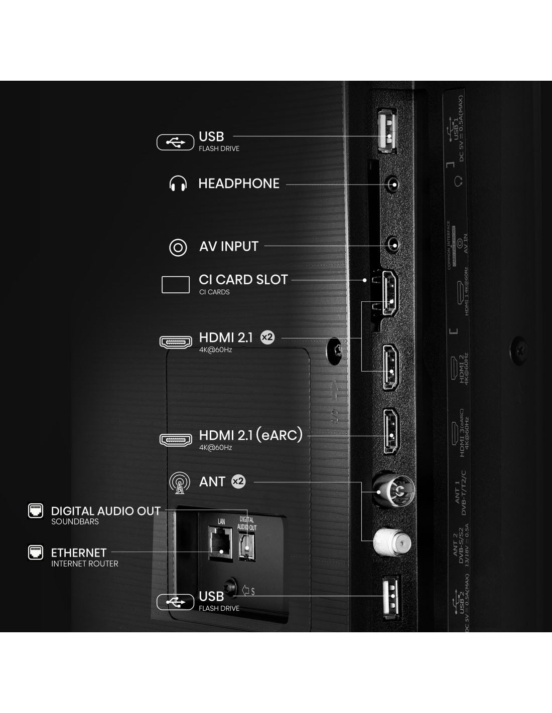 Hisense 75E7NQ. Diagonal de la pantalla: 190,5 cm (75"), Resolución de la pantalla: 3840 x 2160 Pixeles, Tipo HD: 4K Ultra HD, Tecnología de visualización: QLED, Forma de la pantalla: Plana, Tipo de retroiluminación LED: Direct-lit LED. Smart TV. Brillo de pantalla: 350 cd / m², Tiempo de respuesta: 8 ms, Razón de contraste (típica): 1200:1, Relación de aspecto nativa: 16:9. Formato de señal digital: DVB-C, DVB-S, DVB-S2, DVB-T, DVB-T2. Wifi, Ethernet. Color del producto: Negro