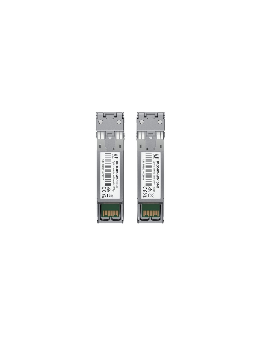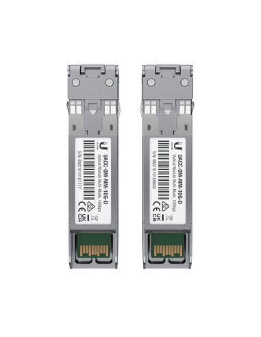 Ubiquiti UACC-OM-MM-10G-D-2. Tipo de transceptor SFP: Fibra óptica, Rango máximo de transferencia de datos: 10000 Mbit/s, Conector fibra óptica: LC. Color del producto: Plata, Material de la carcasa: Metal. Consumo energético: 0,8 W. Cantidad por paquete: 2 pieza(s)