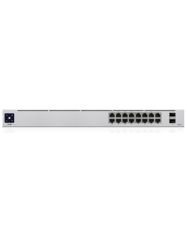 Ubiquiti UniFi 16-Port PoE. Tipo de interruptor: Gestionado, Capa del interruptor: L2/L3. Puertos tipo básico de conmutación RJ-45 Ethernet: Gigabit Ethernet (10/100/1000), Cantidad de puertos básicos de conmutación RJ-45 Ethernet: 16. Bidireccional completo (Full duplex). Capacidad de conmutación: 36 Gbit/s. Estándares de red: IEEE 802.3af, IEEE 802.3at. Voltaje de entrada DC: 44 - 57 V. Energía sobre Ethernet (PoE). Montaje en rack, Factor de forma: 1U