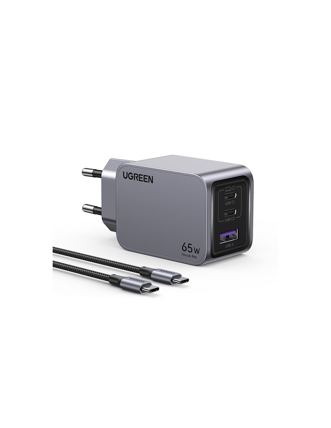Ugreen 25871. Tipo de cargador: Interior, Alimentación: Corriente alterna, Compatibilidad del cargador: Universal, Cantidad de puertos USB 2.0: 1, Número de puertos USB Tipo C: 2, Carga rápida. Color del producto: Gris