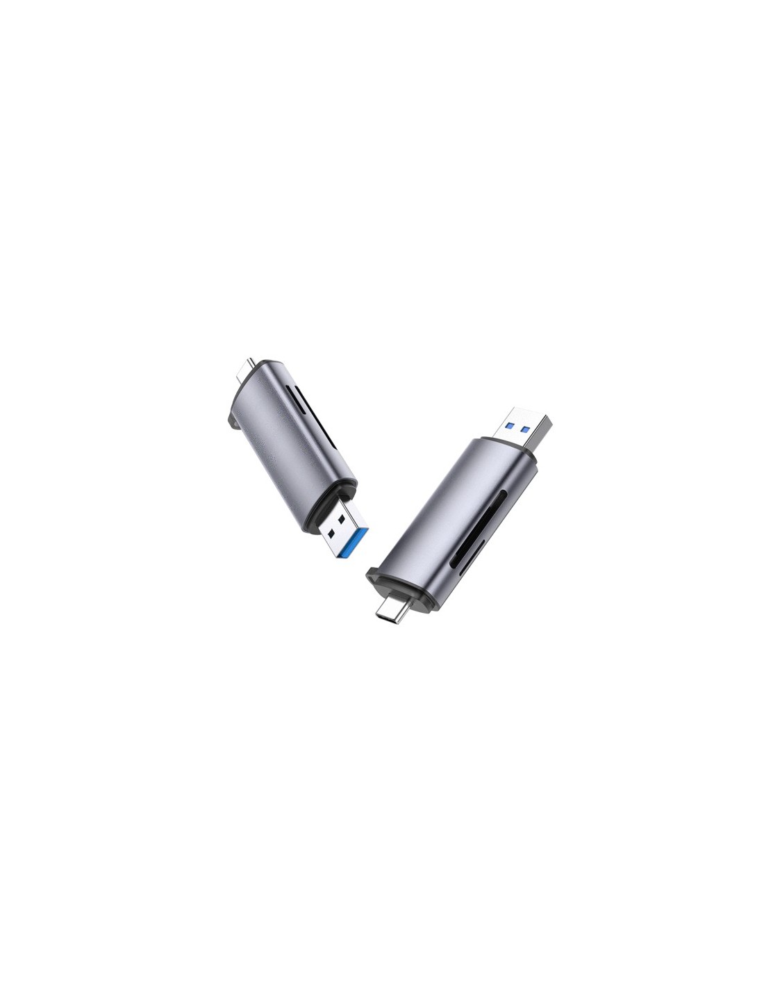 Ugreen 50706. Tarjetas de memoria compatibles: MMC, MicroSD (TransFlash), MicroSDHC, MicroSDXC, RS-MMC, SD, SDHC, SDXC, Color del producto: Plata. Interfaz: USB/Micro-USB. Ancho: 73,7 mm, Profundidad: 21,5 mm, Altura: 11,6 mm. Cantidad por paquete: 1 pieza(s)