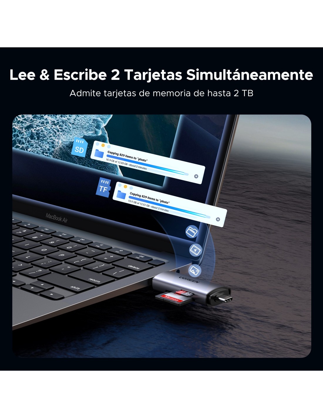 [Dois slots, ler 2 cartões simultaneamente] possui dois slots para cartões SD/micro SD, este leitor de cartões USB C permite ler e transferir dados de 2 cartões simultaneamente. Mais útil para economizar seu tempo. Suporta os cartões da sua câmara Nikon, Canon como SD, micro SD, TF, SDXC, SDHC, MMC, RS-MMC, Micro SDXC, cartão micro SDHC.