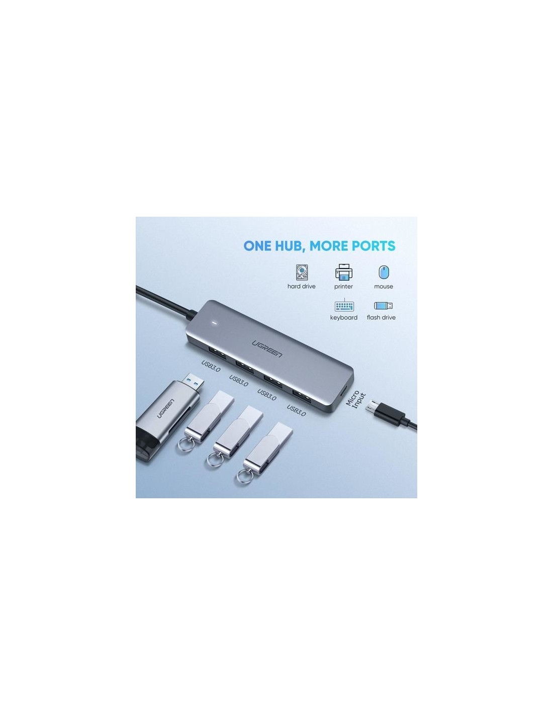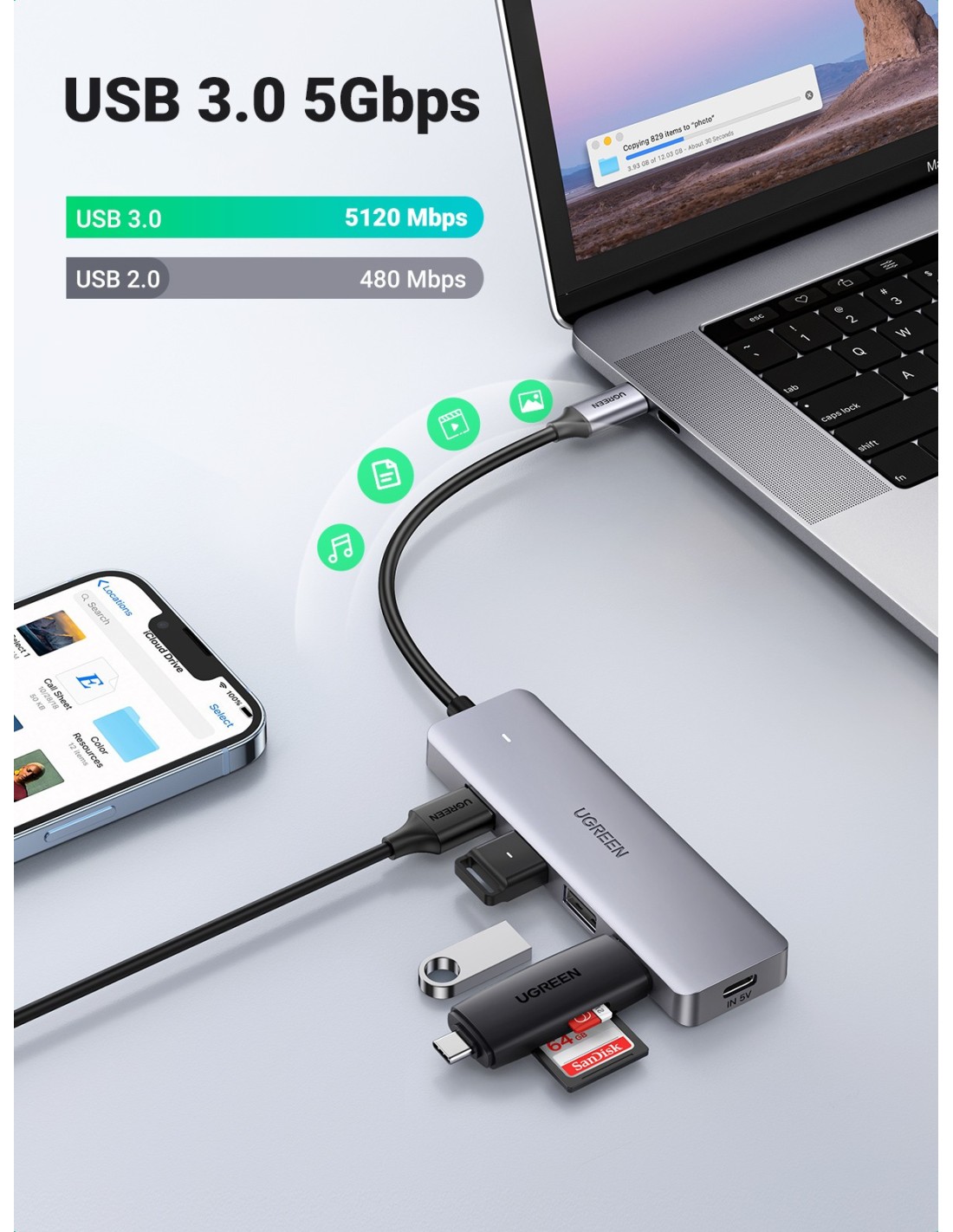 Ugreen 70336. Interfaz de host: USB 3.2 Gen 1 (3.1 Gen 1) Type-C, Interfaces de concentradores: USB 3.2 Gen 1 (3.1 Gen 1) Type-A. Velocidad de transferencia de datos: 5000 Mbit/s, Longitud de cable: 0,15 m, Productos compatibles: Samsung: Galaxy S10 / S10 + / S9 / S9 + / S8 / S8 + / Note 9 / Note 8/ Note 10+/ Note 10 Huawei:.... Ancho: 104 mm, Profundidad: 30 mm, Altura: 10 mm