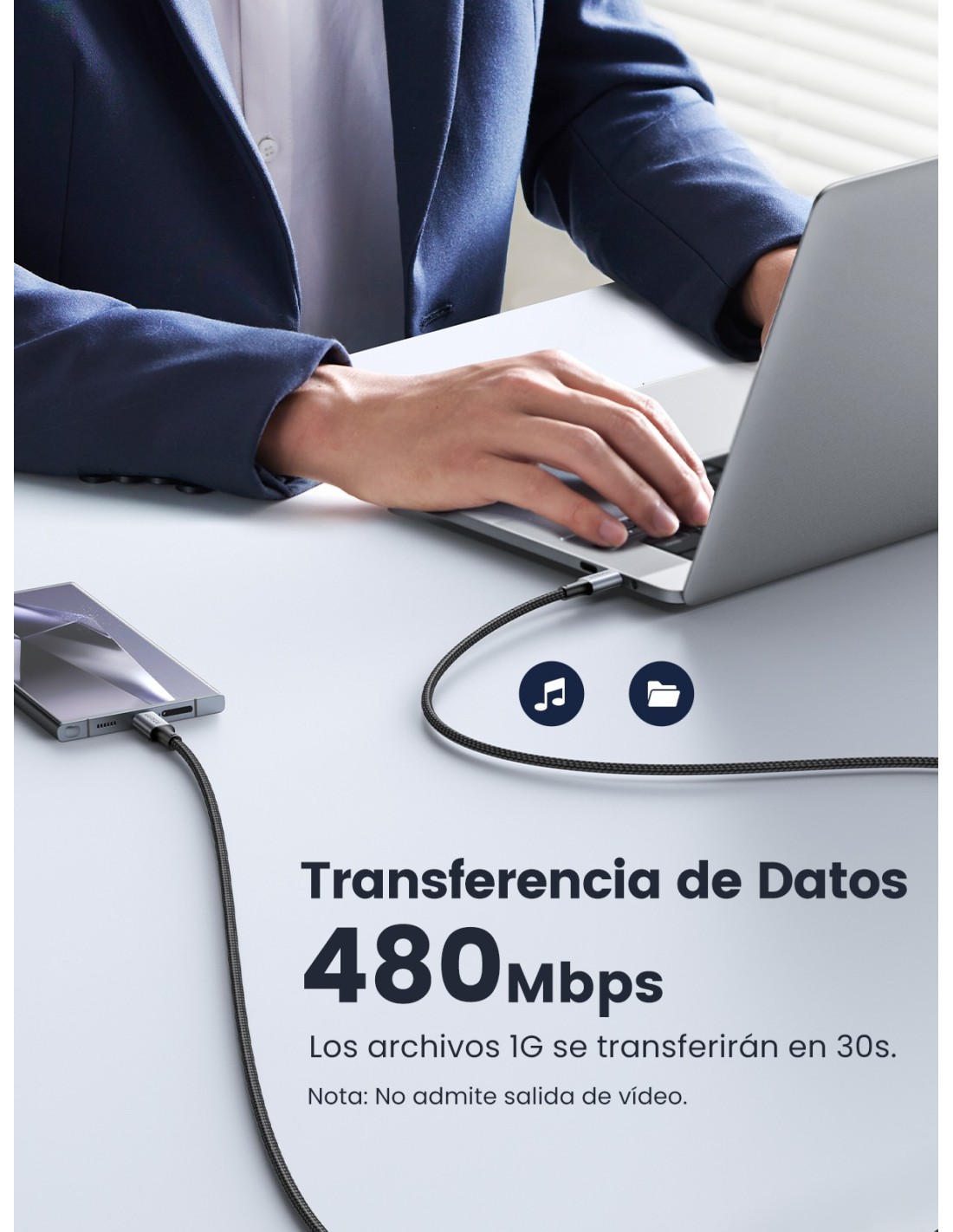 [Carregamento rápido de 100 W] UGREEN cabo USB C para USB C suporta carregamento rápido de PD3.0, SCP, PPS 45W e oferece potência de até 100 W (5 A/20 V). Leva apenas 30 minutos para carregar o iPad Pro 2024 para 50%, até o iPhone 16 pode ser carregado 50% em apenas 30 minutos. [Ampla compatibilidade] UGREEN cabo USB C é compatível com a maioria dos dispositivos USB C, como iPhone 16/16 Plus/16 Pro Max/16 Pro/15/15 Plus/15 Pro/15 Pro Max, MacBook Pro/Air, Dell, iPad Pro 2024/2023, iPad Air 6/5, Galaxy S24/S24 Ultra/S23/S22, Pixel 6a/7/7Pro/8, Huawei P60/Mate 60, etc. [Transferência rápida] A velocidade de transmissão máxima teoricamente alcançável até 480 Mbps. Leva apenas alguns segundos para transferir um arquivo entre o PC e o disco rígido. Nota: Não suporta conexão com o monitor e não suporta a dobra do ecrã. [Seguro e confiável] O cabo USB tipo C da UGREEN adota o chip inteligente E-Marker, identifica e fornece automaticamente a corrente necessária do dispositivo, evita danos durante o carregamento. [Durável e anti-emaranhado] O cabo de dados é coberto por nylon, bem feito e resistente, especialmente bem acabado na parte dos conectores, protege contra rasgos e dobras, não cria nós quando o coloca na bolsa.