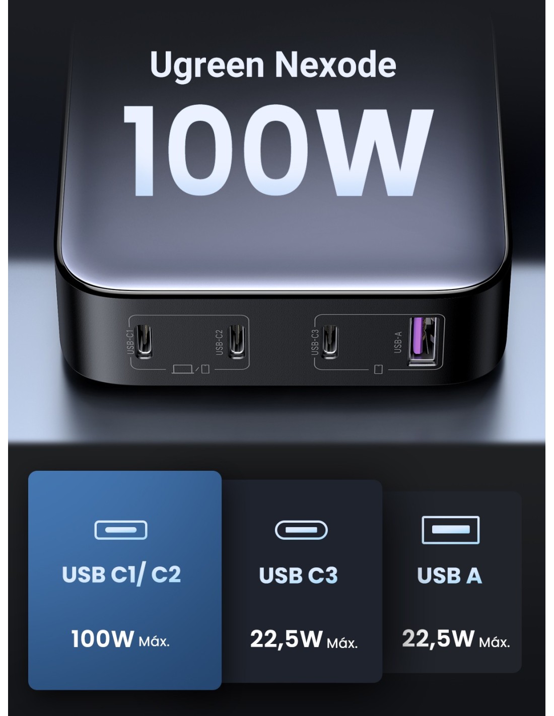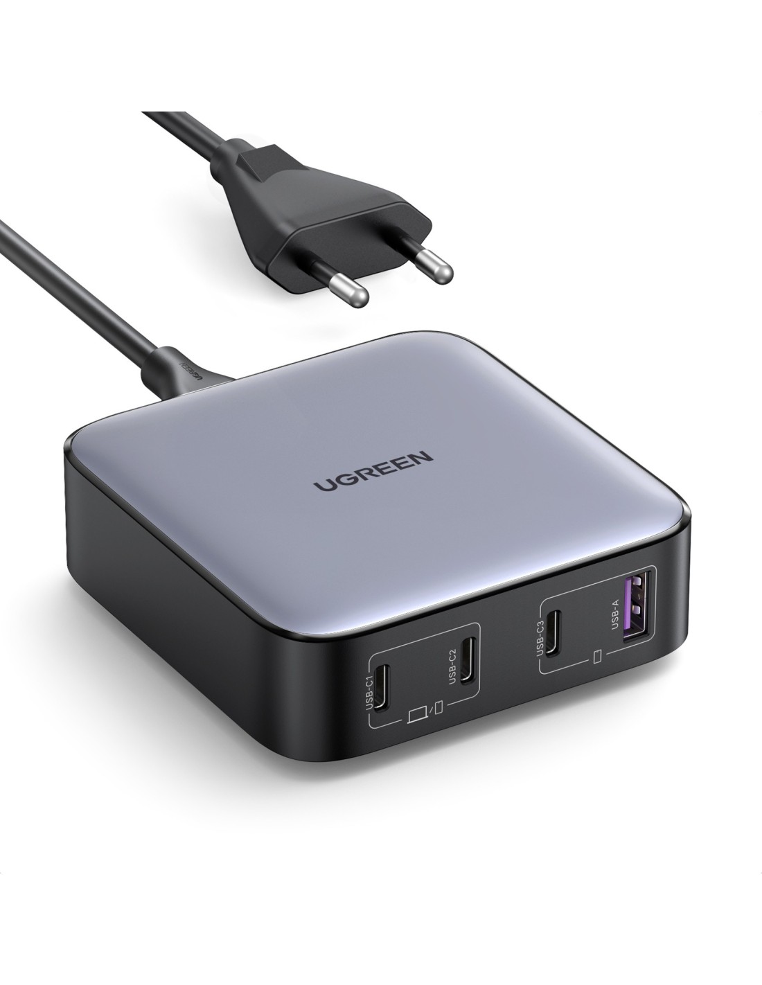Ugreen Nexode. Tipo de cargador: Interior, Alimentación: Corriente alterna, Compatibilidad del cargador: Universal. Voltaje de entrada: 240 V. Cantidad de puertos USB 2.0: 1, Número de puertos USB Tipo C: 3, Carga rápida. Color del producto: Gris