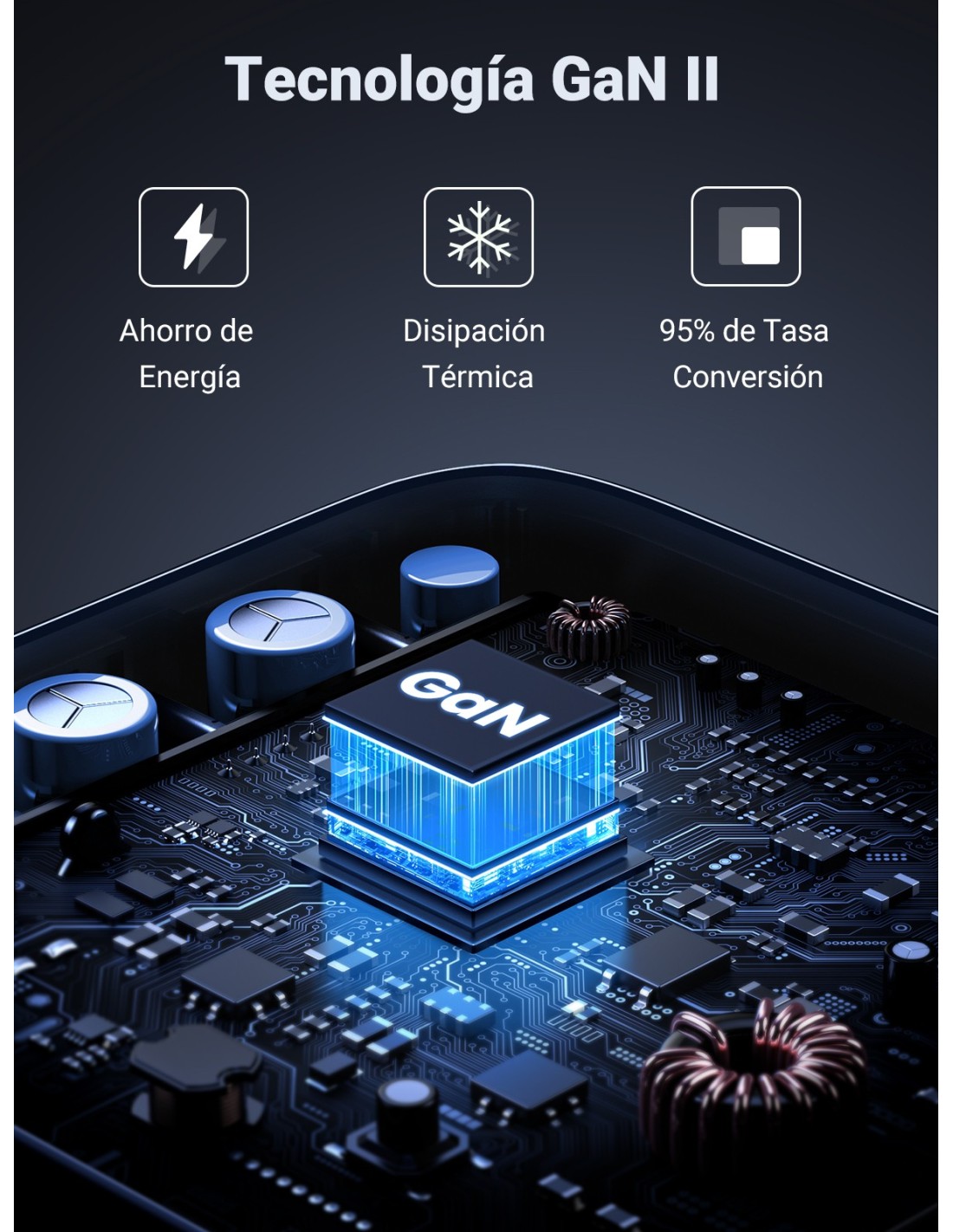 Tecnologia avançada GaN II: Este carregador de 100 W otimiza a sua experiência de carregamento com tecnologia GaN, como economia de energia, dissipação de calor, tamanho compacto, etc. Tamanho: 8,3 * 8,7 * 2,9 cm.
