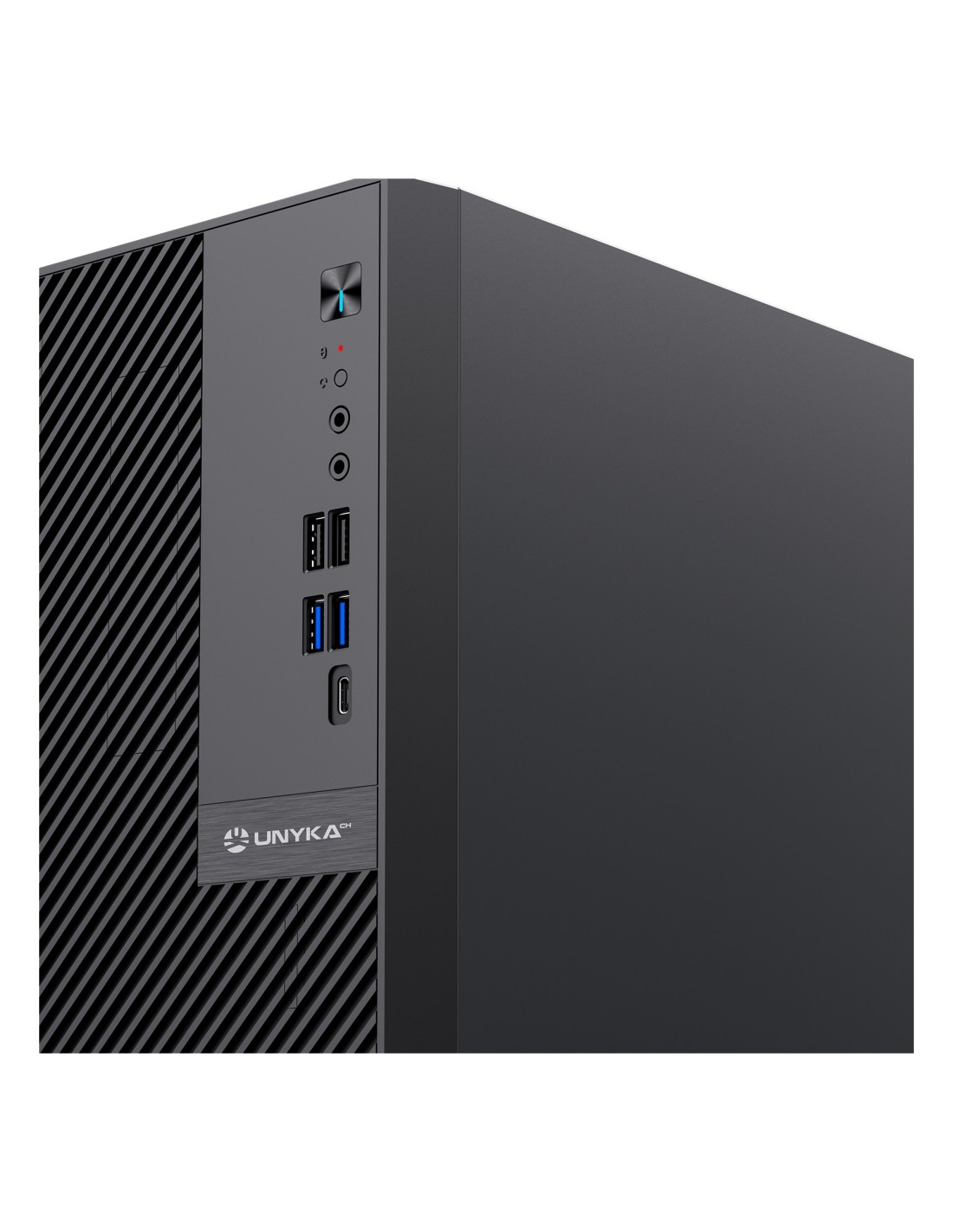El nuevo chasis de UNYKAch NUMEN 500 PRO TYPE C formato Micro ATX de 17 litros, admite fuente de alimentación en formato ATX estandar, cuenta con 5 puertos USB en total, 2 USB 2.0, 2 USB 3.0 y un USB Type C. Además, su diseño permite colocarla tanto en posición horizontal como vertical, lo que la hace versátil a cualquier espacio y necesidad. Esta caja es compatible con fuentes de alimentación ATX, lo que la hace una excelente opción para proyectos que requieren una fuente de alimentación mas potente o menos . Con esta caja, los usuarios podrán disfrutar de un diseño moderno y atractivo, sin sacrificar la funcionalidad ni la conectividad.