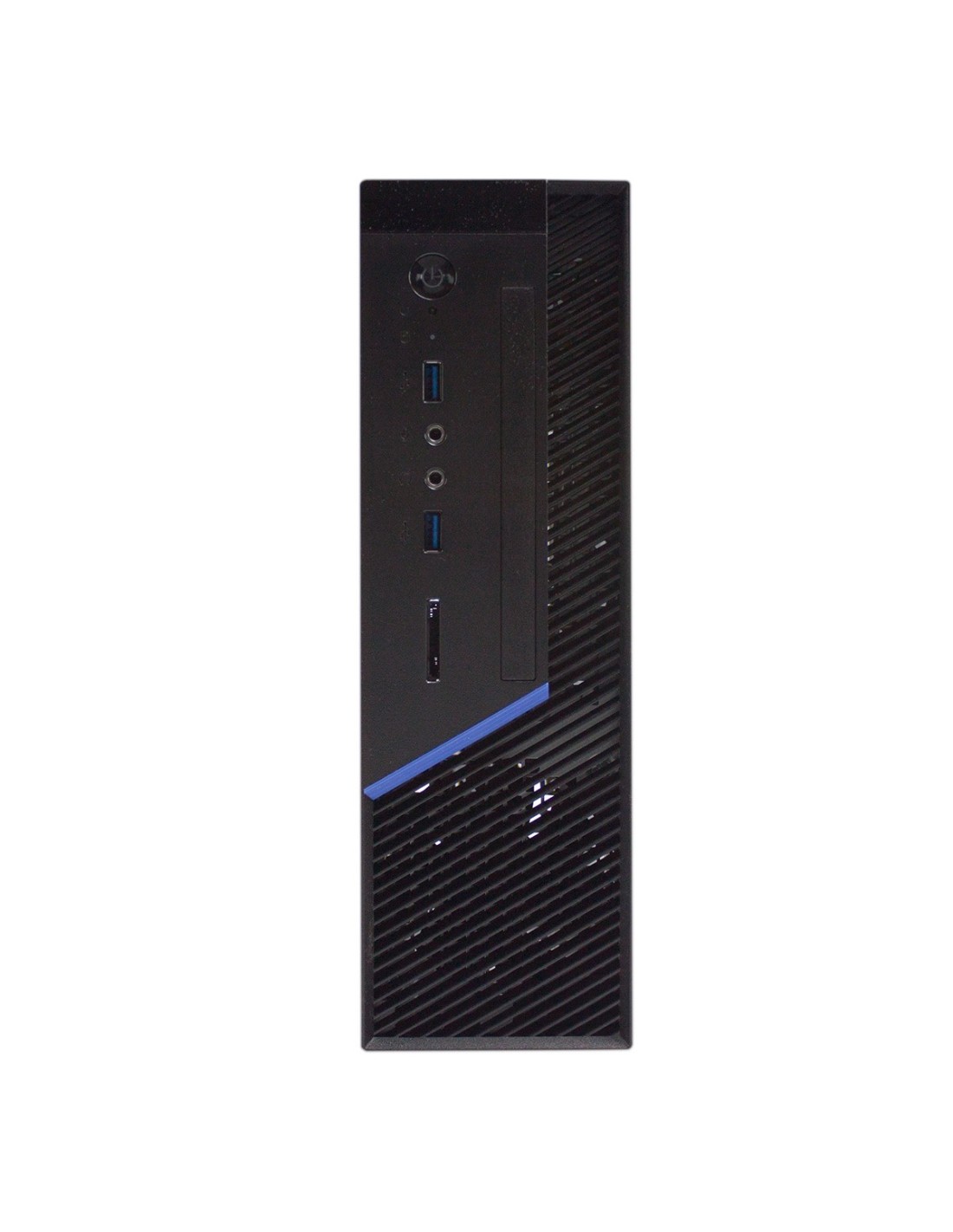 Tiene un diseño moderno y elegante, en el que destaca su frontal innovador con una franja en color azul diferente al resto de elementos. Respecto al chasis de acero, presenta una estructura compacta, pero con el espacio bien distribuido y capaz de albergar hasta 2 discos duros, un ventilador y una tarjeta gráfica de hasta 160mm.