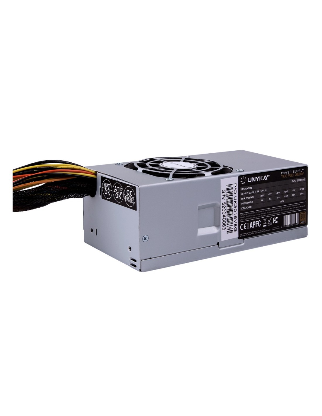 UNYKAch TFX 350W 80 Plus Bronze. Potencia total: 350 W, Voltaje de entrada AC: 100 - 240 V, Frecuencia de entrada AC: 47 - 63 Hz. Alimentador de energía para tarjeta madre: 20+4 pin ATX, Longitud del cable de alimentación de la placa base: 38 cm, Longitud del cable de alimentación SATA: 380,500 mm. Utilizar con: Servidor, Factor de forma de fuente de alimentación (PSU): TFX, Certificación 80 PLUS: 80 PLUS Bronze. Color del producto: Plata, Tipo de enfriamiento: Activo, Diámetro de ventilador: 8 cm. Certificación: CE, ROHS, EN60950, TÚV, 80+BRONCE